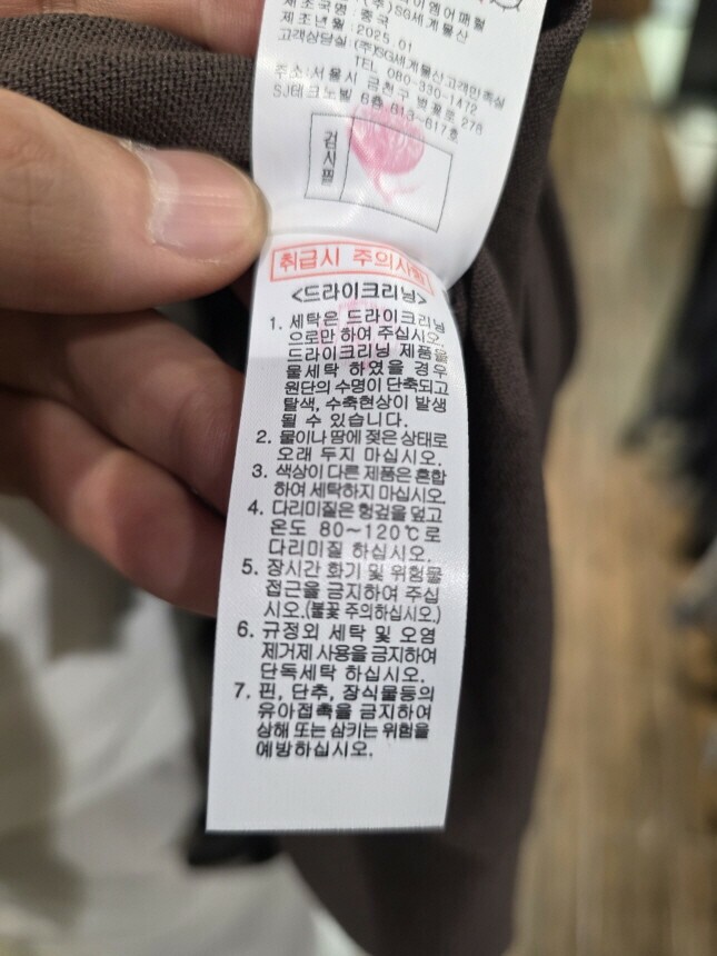 | 6. 세탁방법 및 취급시 주의사항 | 드라이크리닝 |