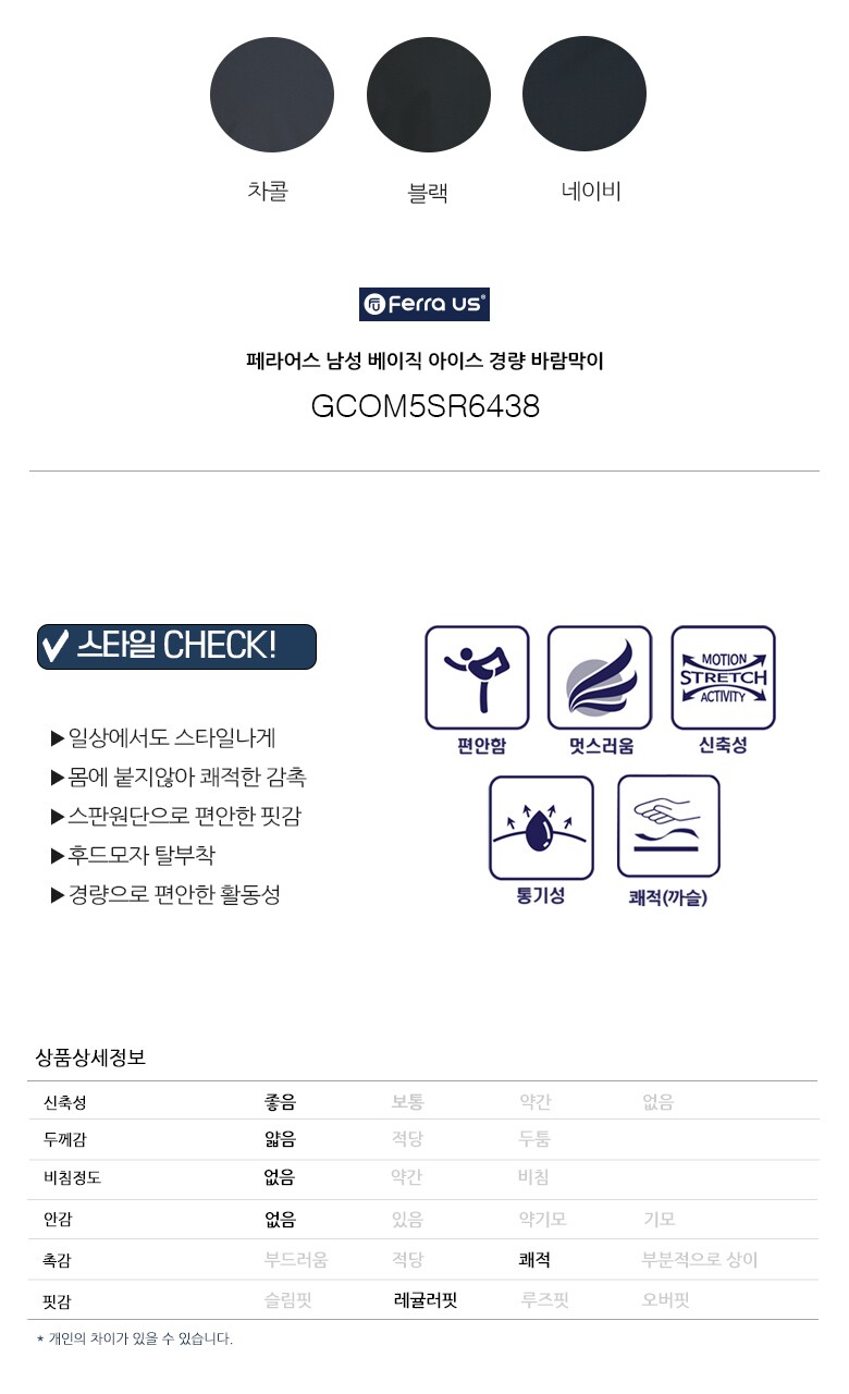 골피아 남성 베이직 아이스 경량 바람막이 GCOM5SR6438