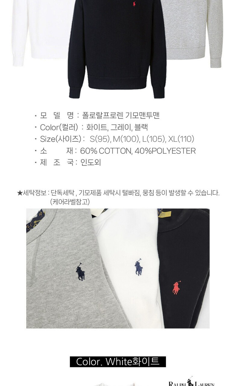 [폴로랄프로렌](Polo Ralph Lauren) 기모 맨투맨 3종중 1택