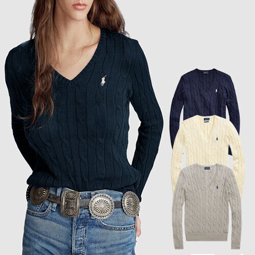 폴로랄프로렌 여성용 케이블 브이넥 니트