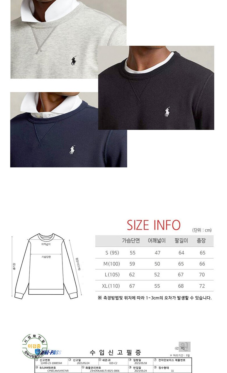 두께감이 살짝 있는 폴로 스웨트 맨투맨입니다.