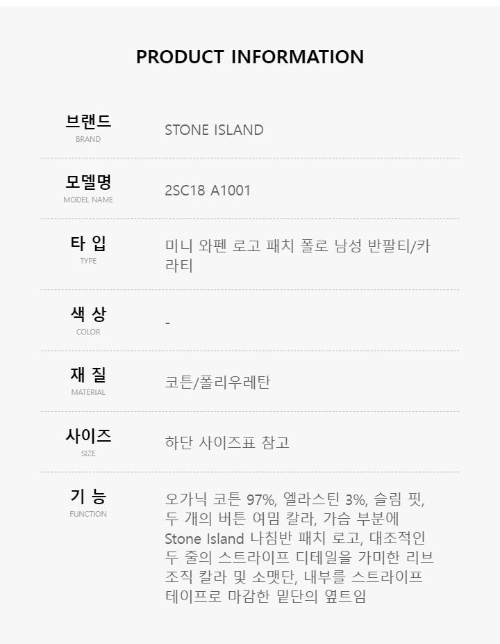 | 1. 제품 소재 (섬유의 조성 또는 혼용률을 백분율로 표시, 기능성인 경우 성적서 또는 허가서) | 상세페이지 참조 |