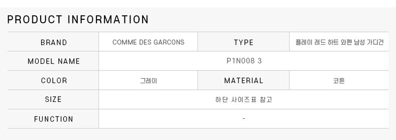 - #리본즈코리아 #P1N0083 #[명품] #꼼데가르송 #P1N008 #3 #AX #N008 #051 #PLAY #플레이 #레드 #하트 #와펜 #남성 #가디건 #의류 #니트/가디건