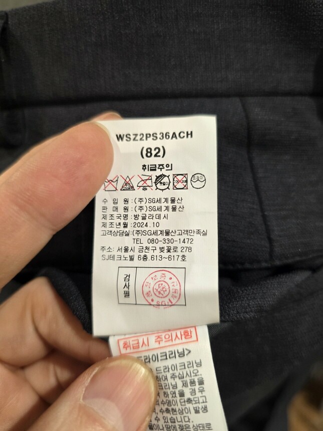 | 6. 세탁방법 및 취급시 주의사항 | 단독 물세탁 하십시오 |