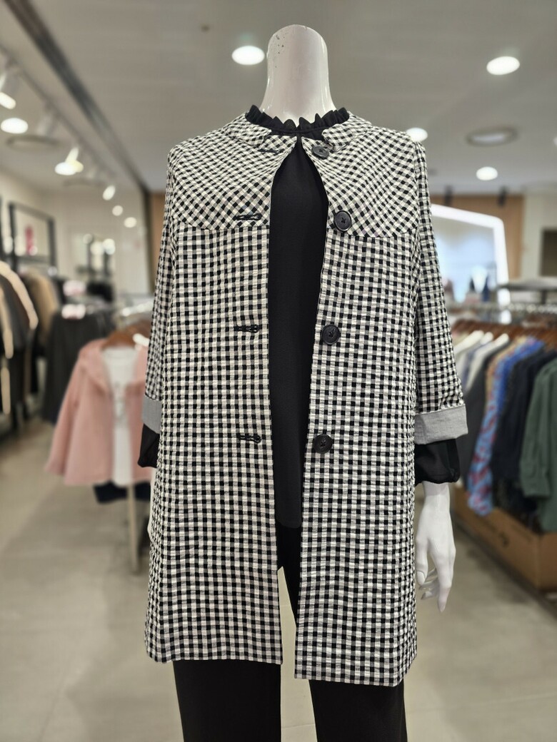 룸나인-라운드넥선 체크 자켓(AQ1JK5100)