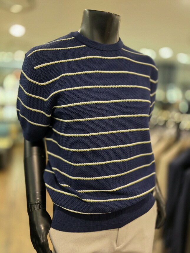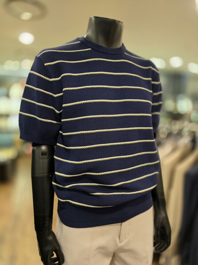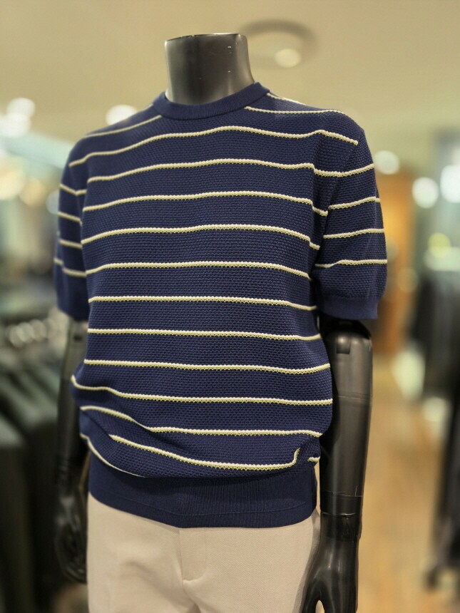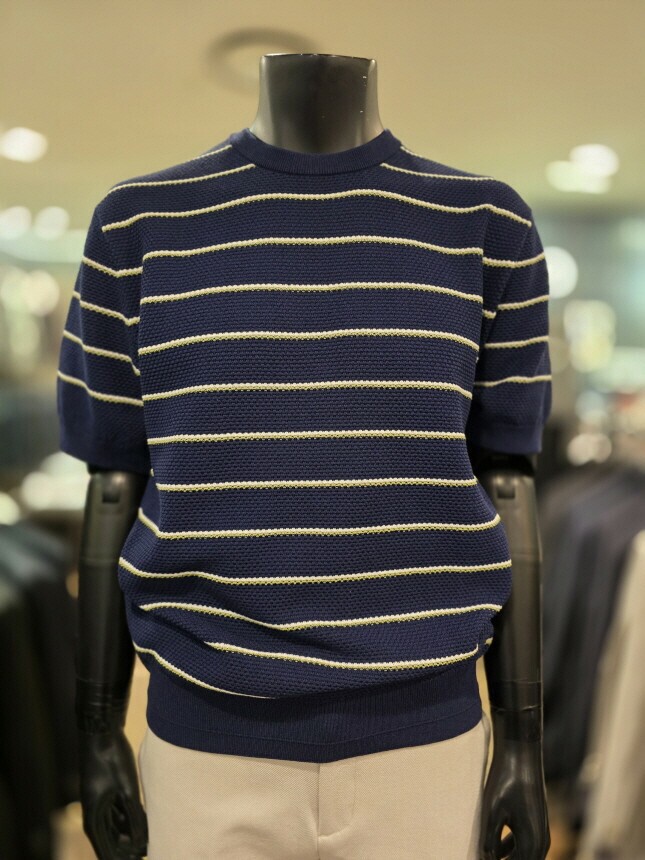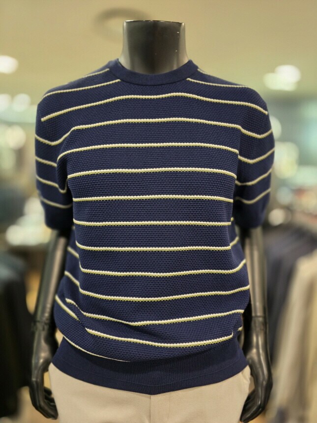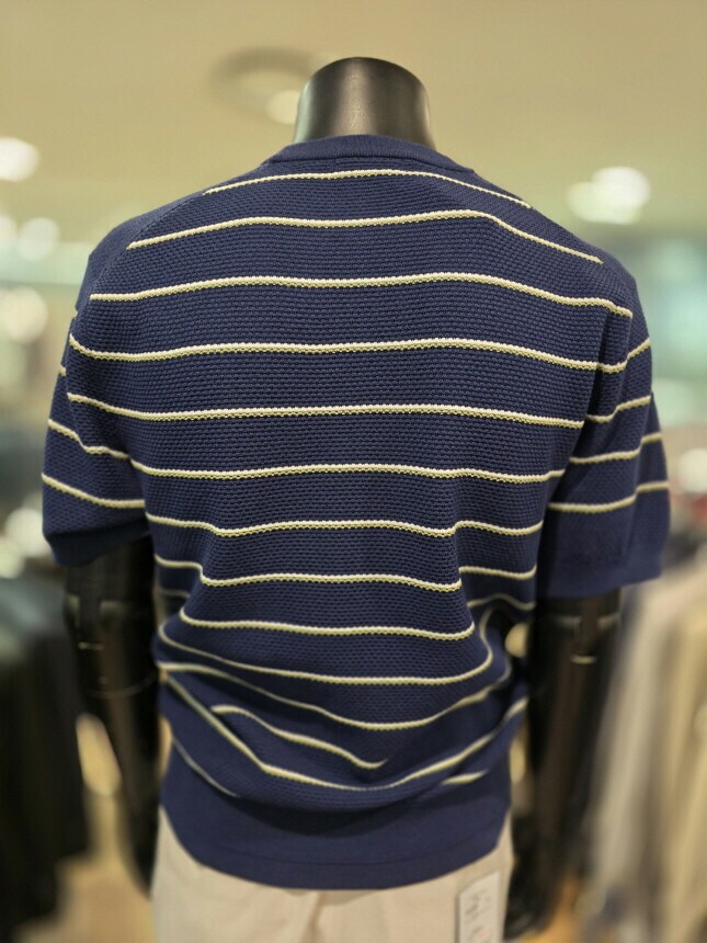 [바쏘옴므] Z2WR28A 25년S/S 네이비 단가라 라운드 반소매 니트
