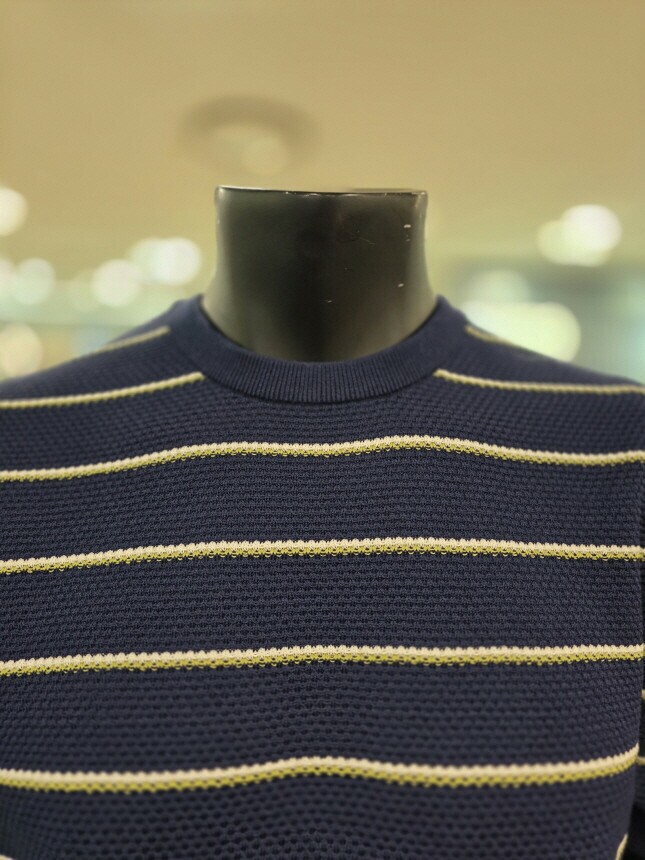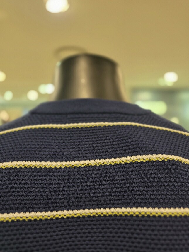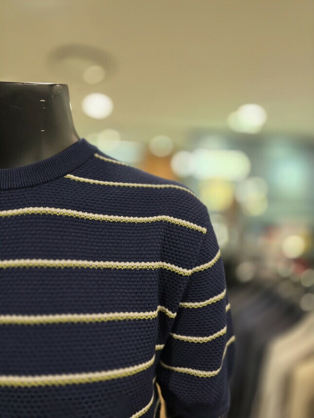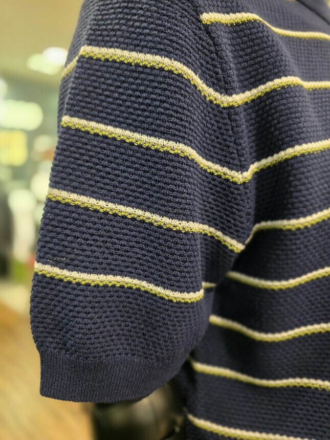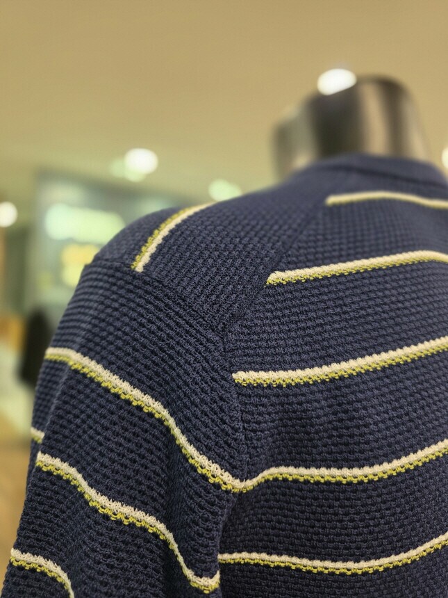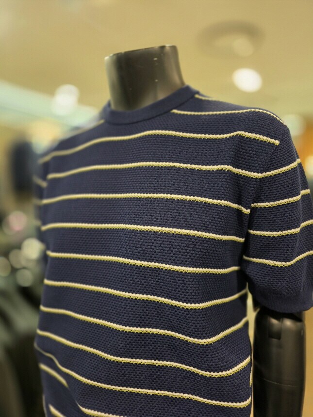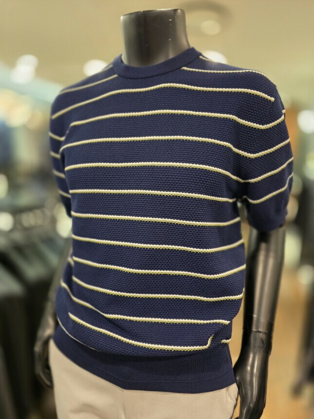 [바쏘옴므] Z2WR28A 25년S/S 네이비 단가라 라운드 반소매 니트