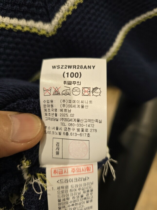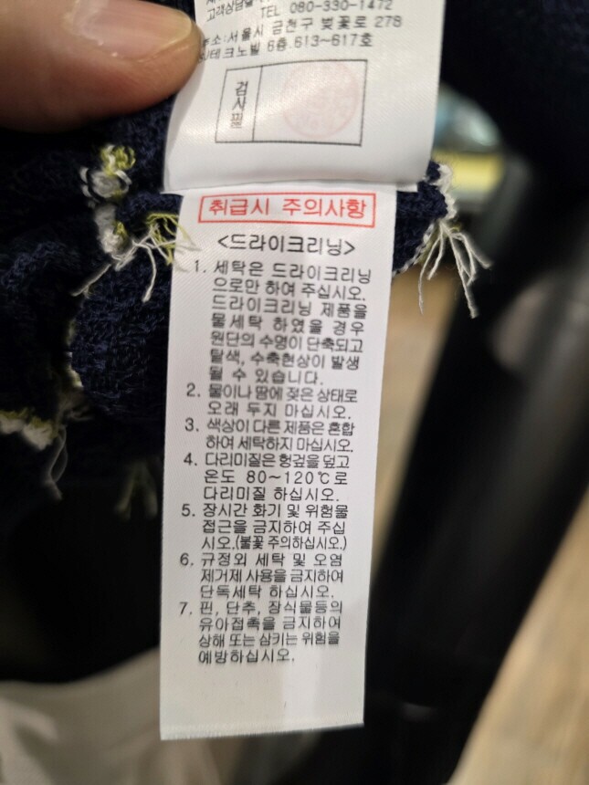 | 6. 세탁방법 및 취급시 주의사항 | 드라이크리닝 |