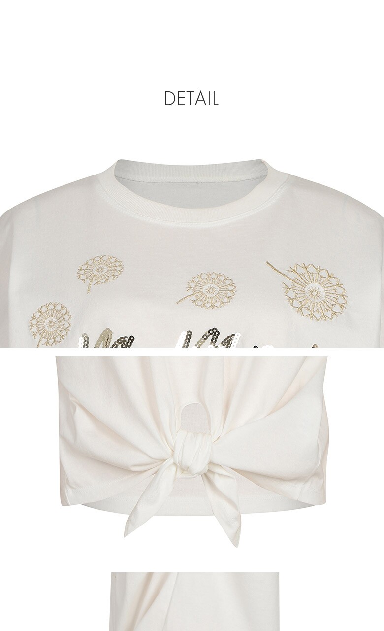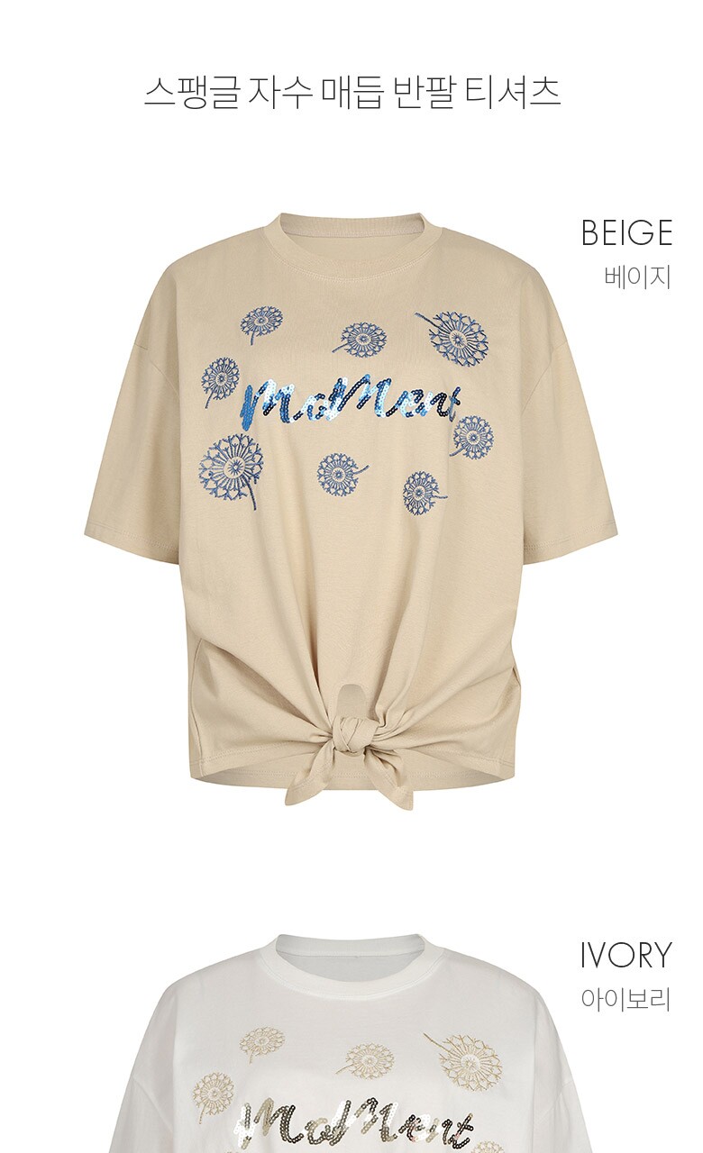 (예쎄) 스팽글 자수 매듭 반팔 티셔츠(YW07TS42C)