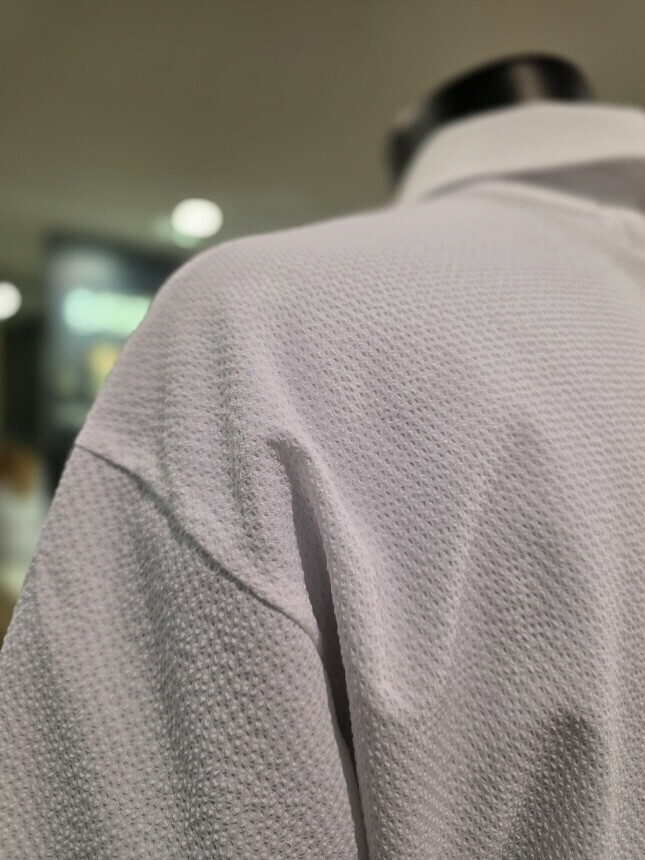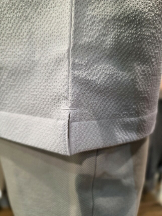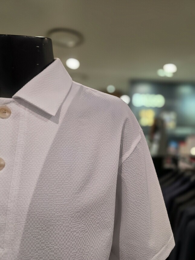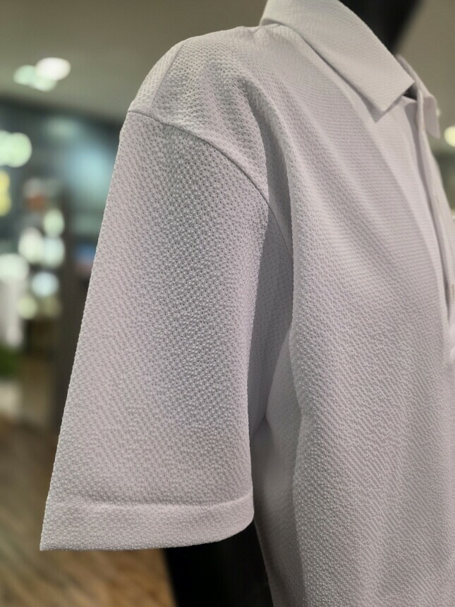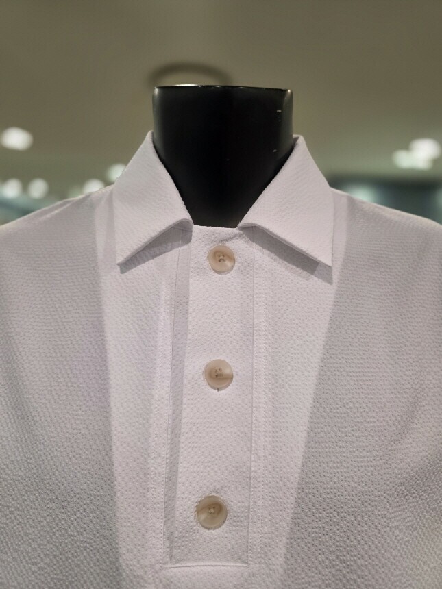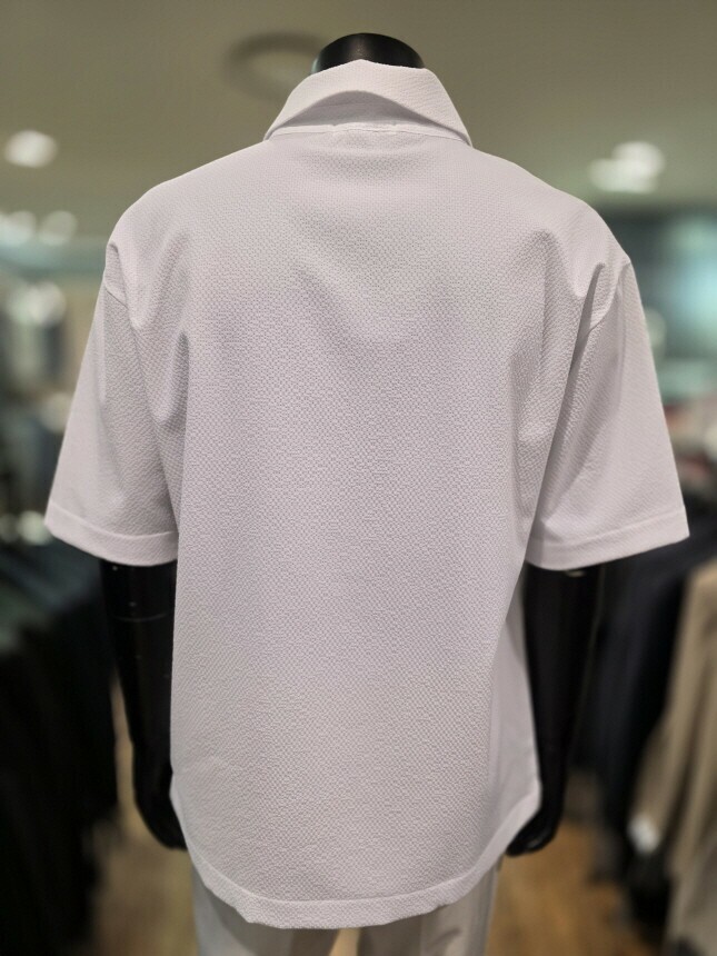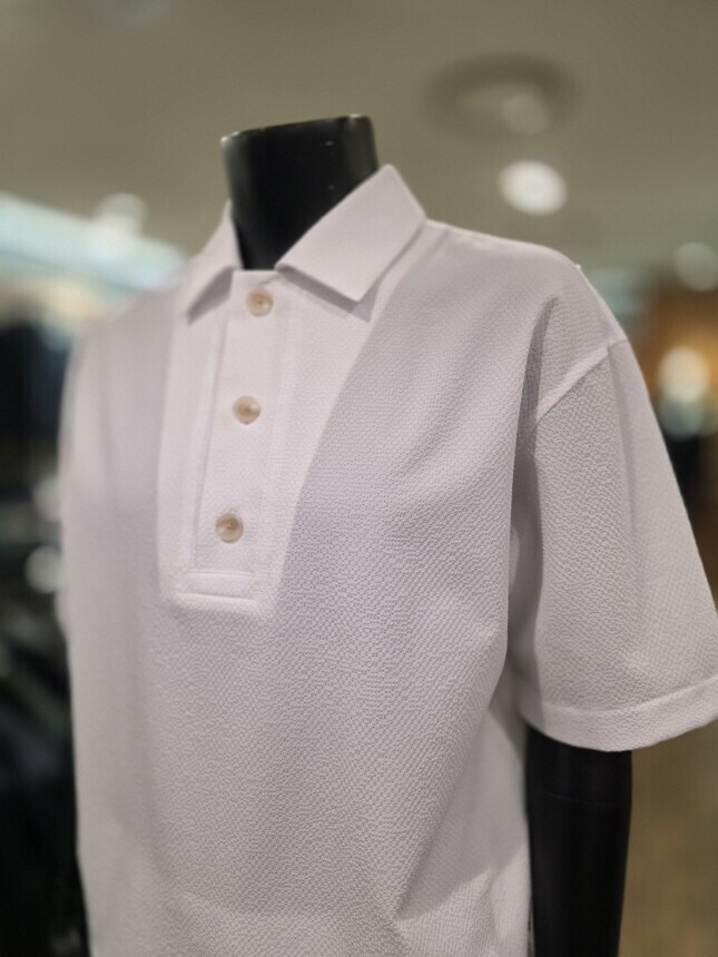 [바쏘옴므] Z2KT91A 25년S/S 화이트 3버튼 시어서커 오버핏 반소매 피케 티셔츠