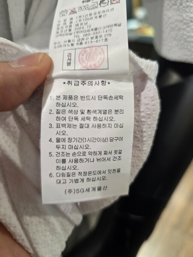 | 6. 세탁방법 및 취급시 주의사항 | 단독 손세탁 |