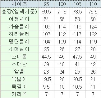 | 1. 제품 소재 (섬유의 조성 또는 혼용률을 백분율로 표시, 기능성인 경우 성적서 또는 허가서) | 겉감 : 폴리에스터 96% , 폴리우레탄 4% (심지,보강재,상표,무늬,밴 |