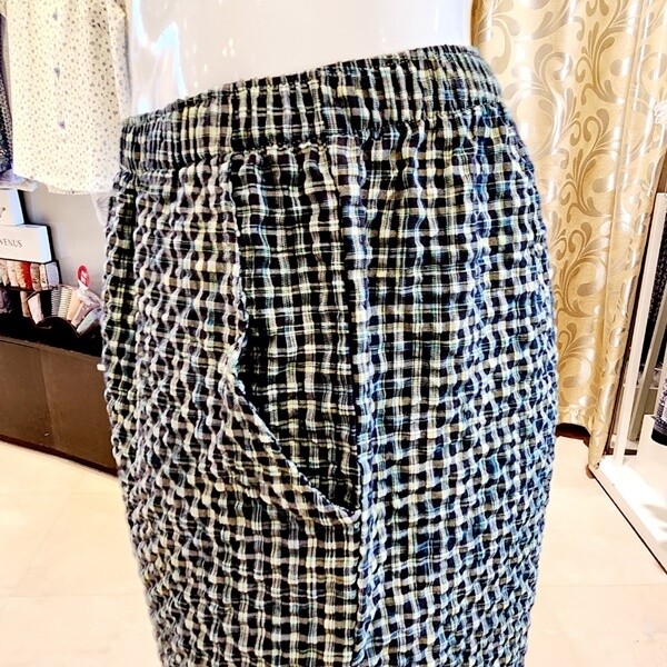 가볍고 요철감 있는 면폴리 요루 선염 체크 제품입니다.