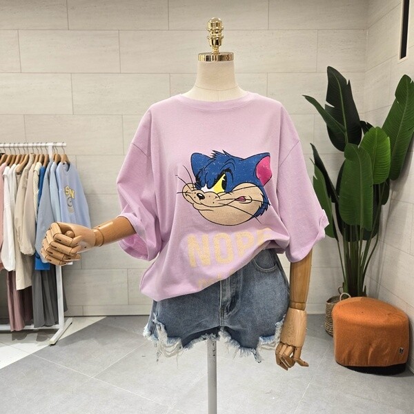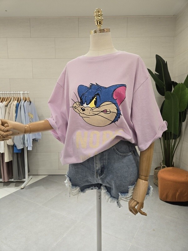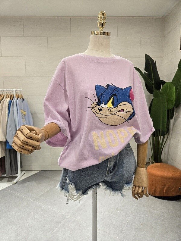 C25C7FTS056_루즈핏 캣톰 반팔티셔츠