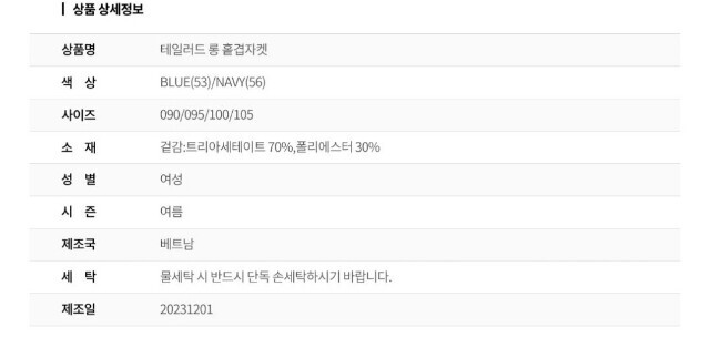 | 6. 세탁방법 및 취급시 주의사항 | 상품상세참조 |