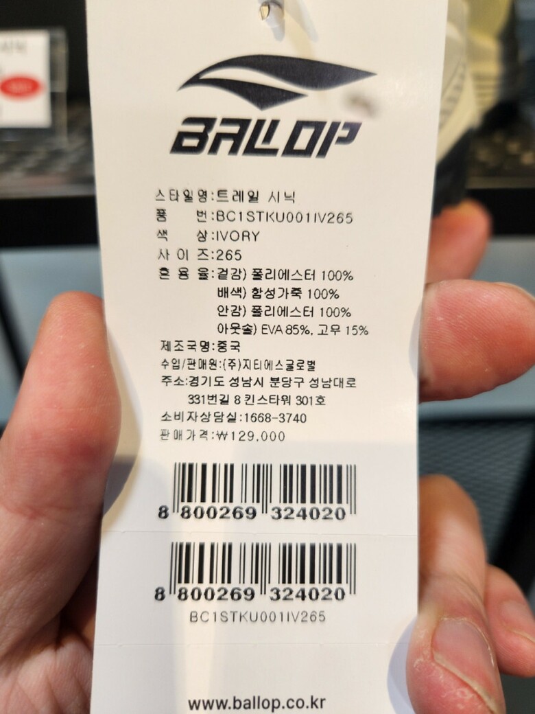 | 1. 제품 소재 (운동화인 경우에는 겉감, 안감을 구분하여 표시) | 배색:폴리에스테르, 고무 |