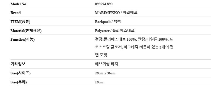 | 5. 제조사 | 마리메꼬/MACHO-병행수입 |