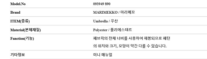 | 8. 사이즈정보 | 상세페이지 참조 |