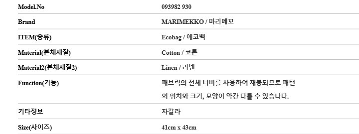 마리메꼬 093982 930 (Jakala) 반카 자칼라 에코백