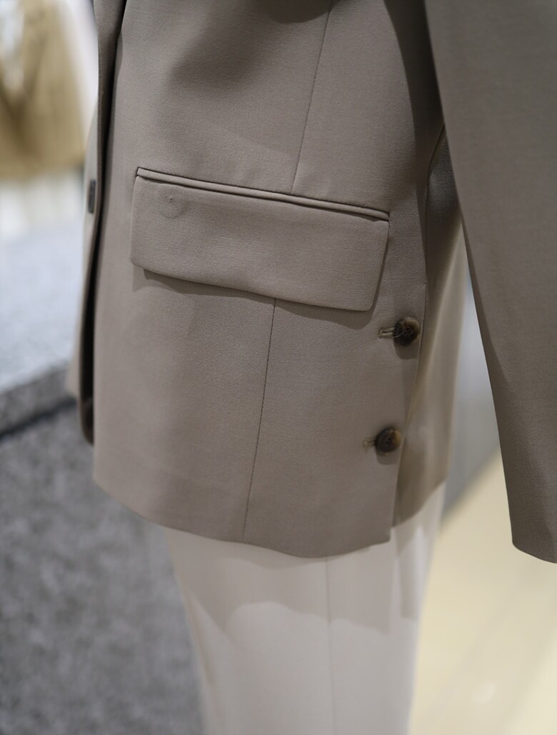 사이드 버튼 디테일로 포인트를 준 자켓!