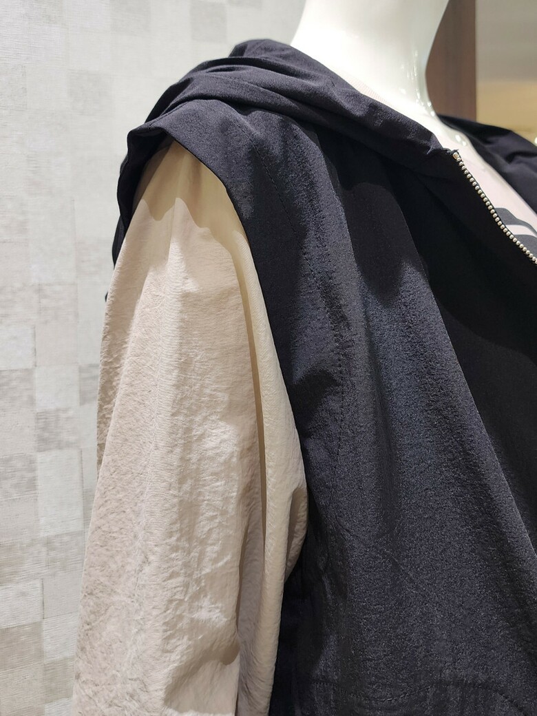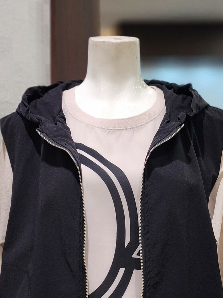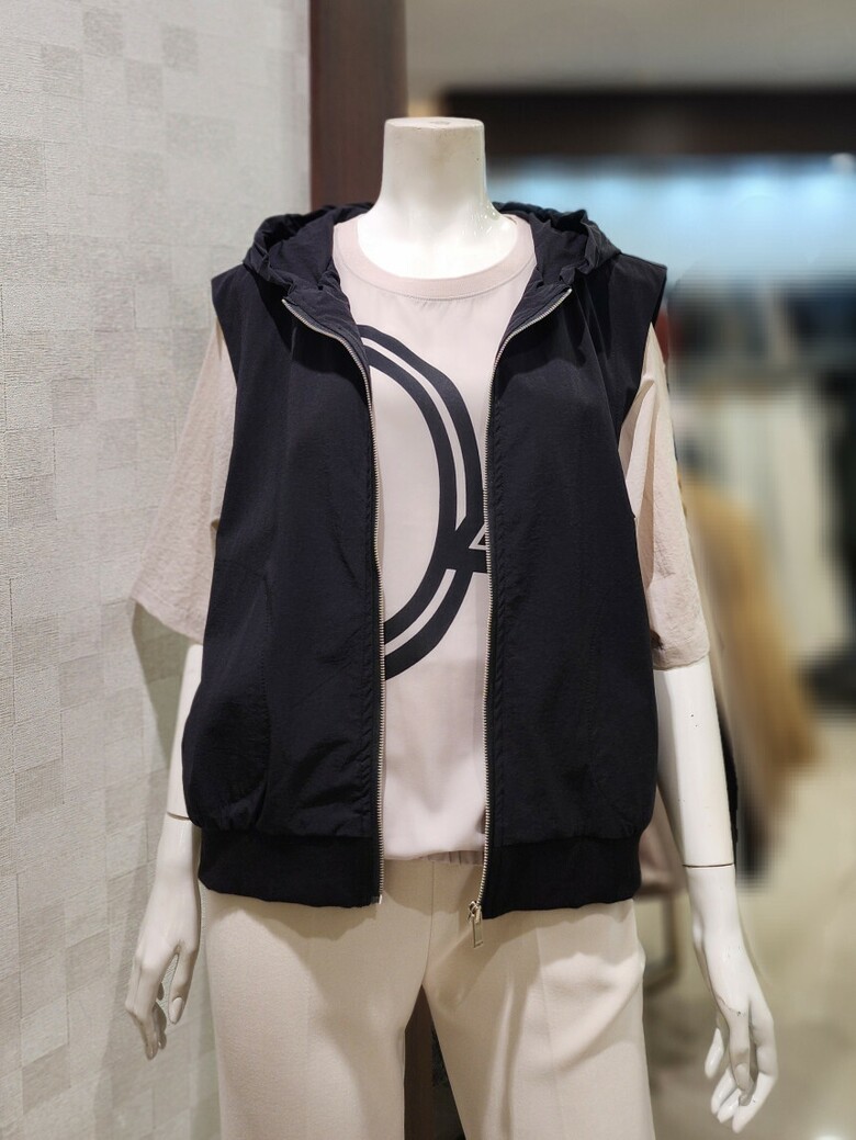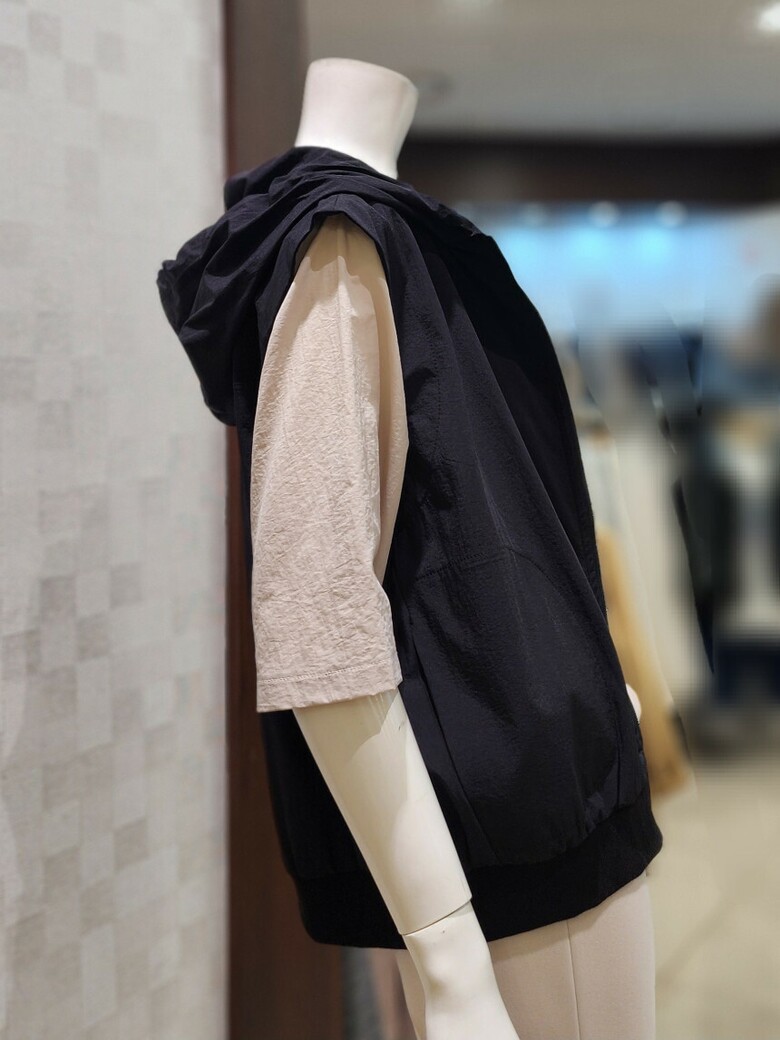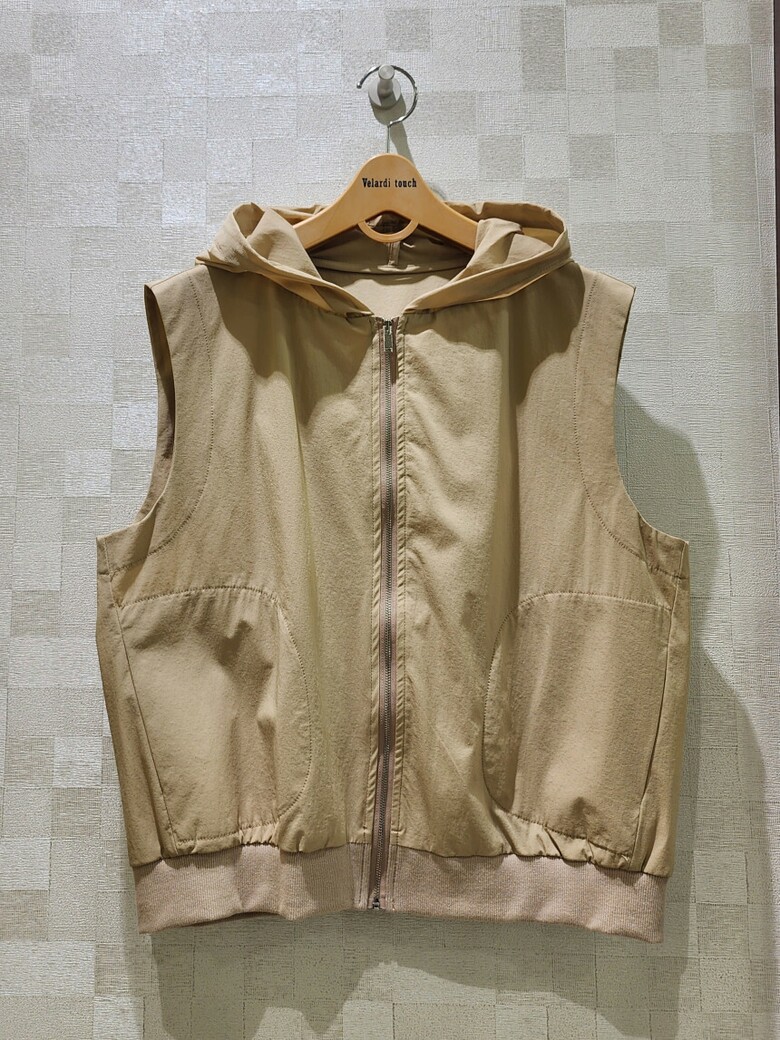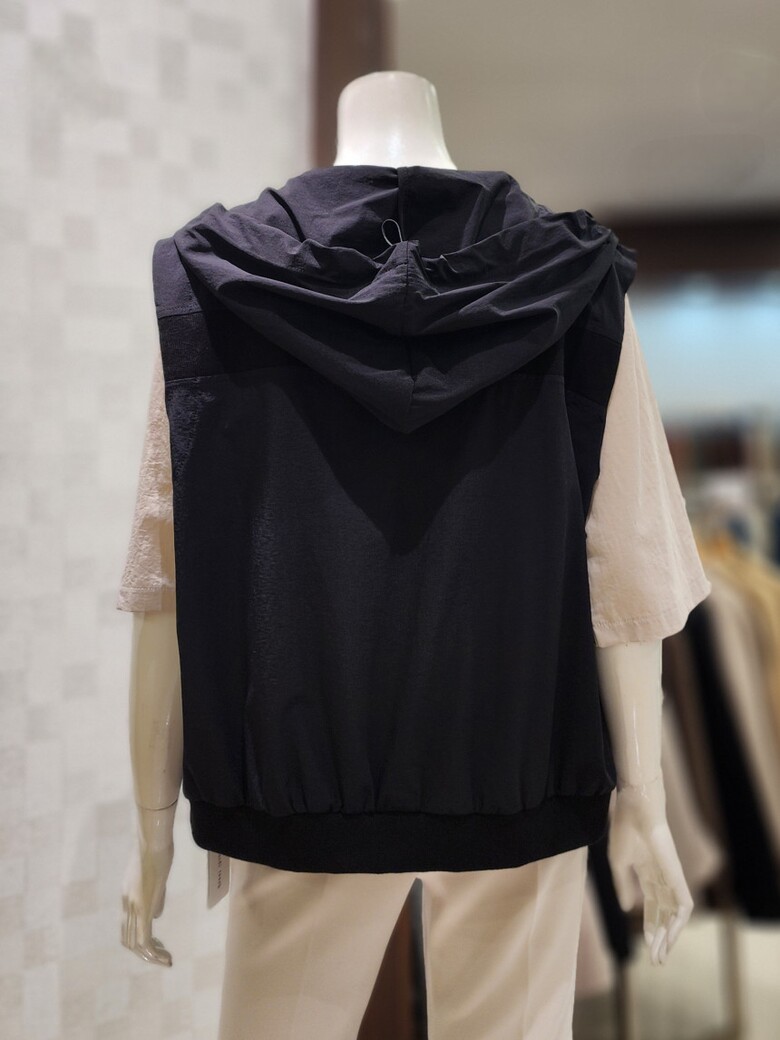 텐션 좋은 프라다 소재 후드 조끼에요.