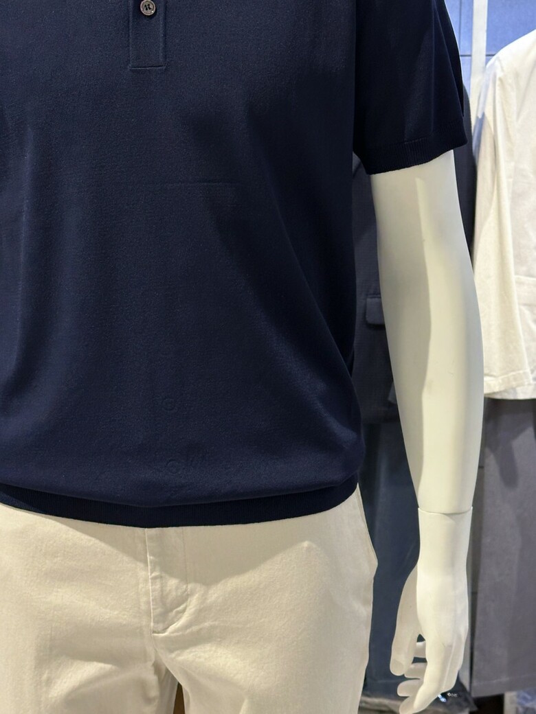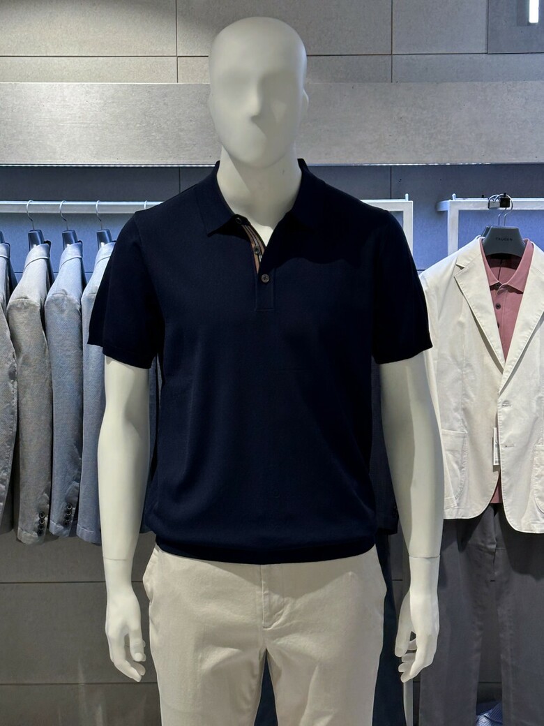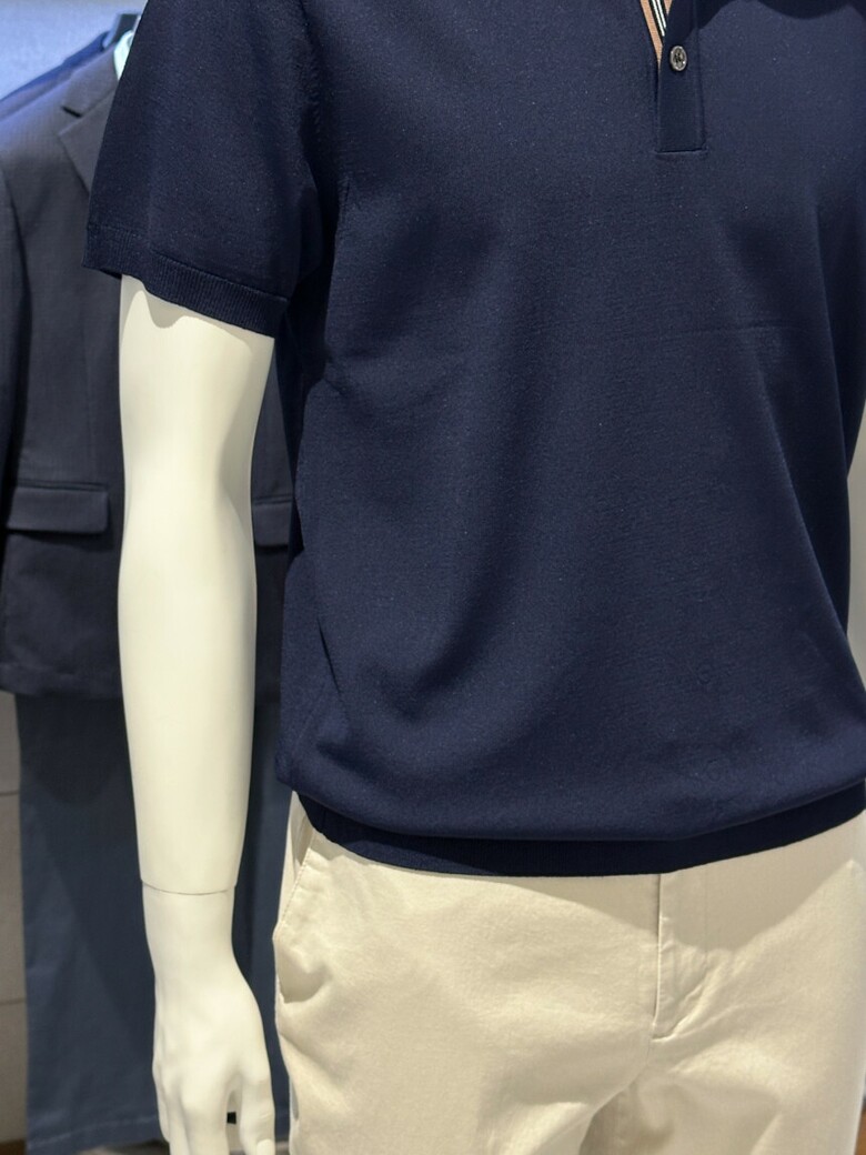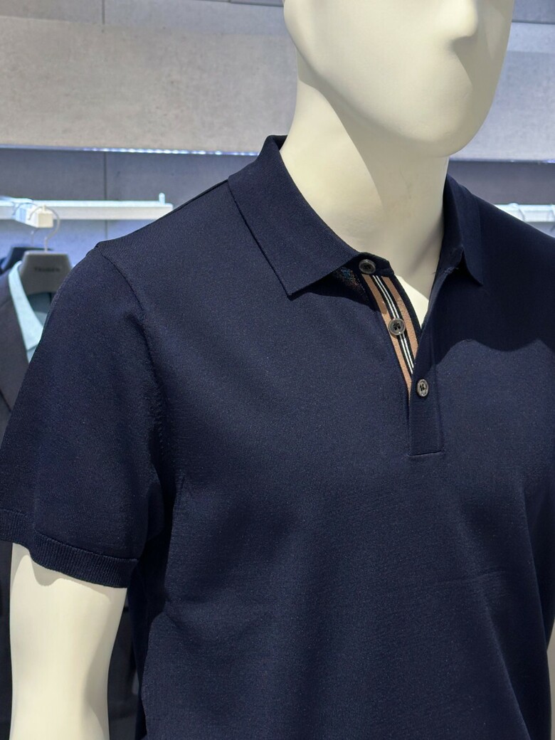 트루젠 네이비 라인배색 반팔 카라 니트 2533SP001014