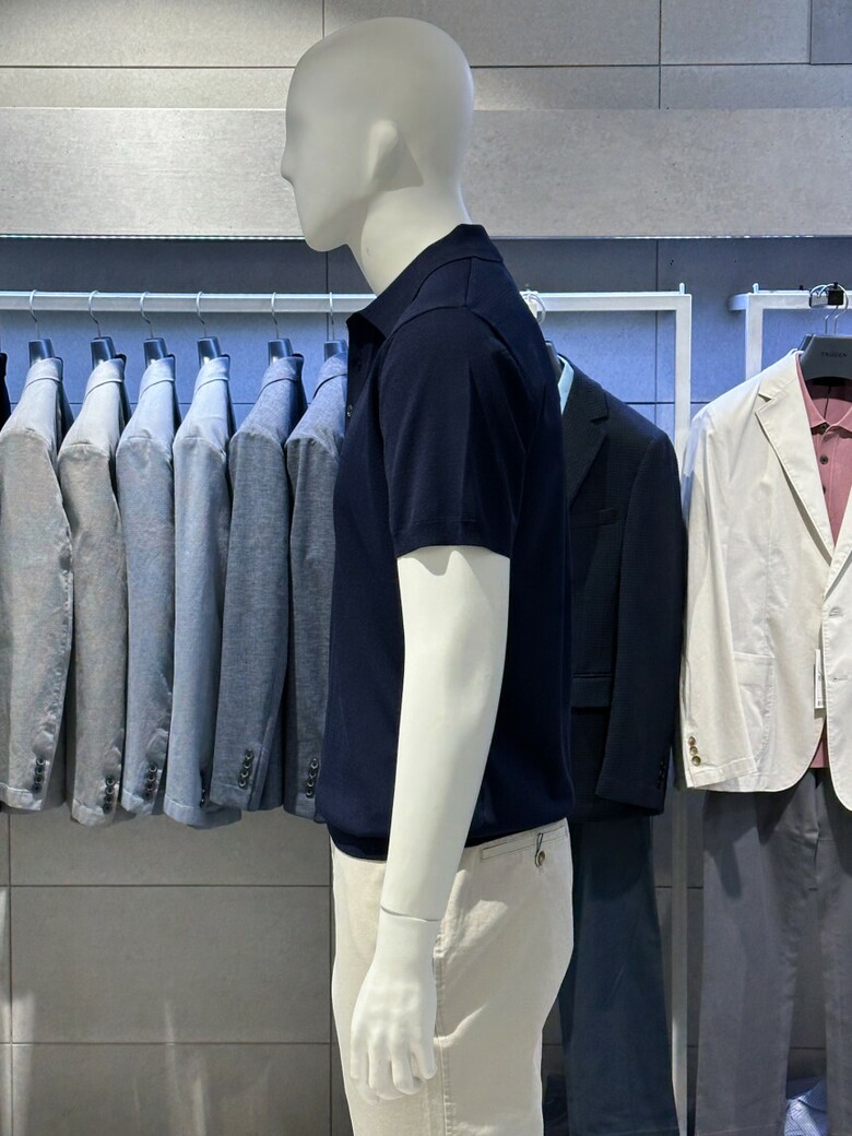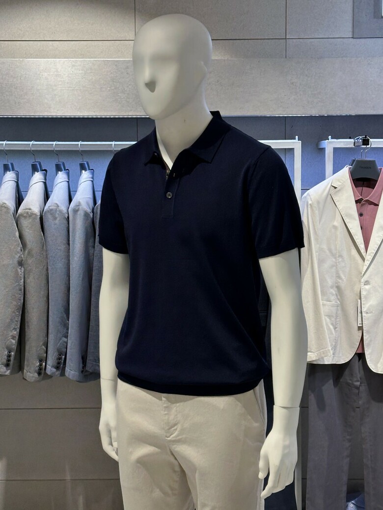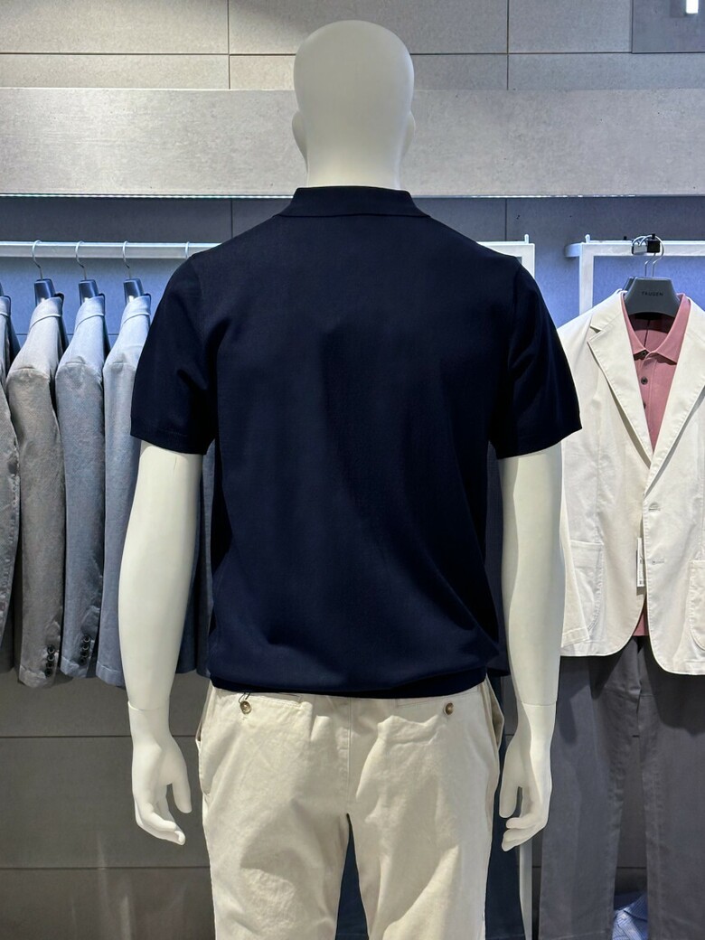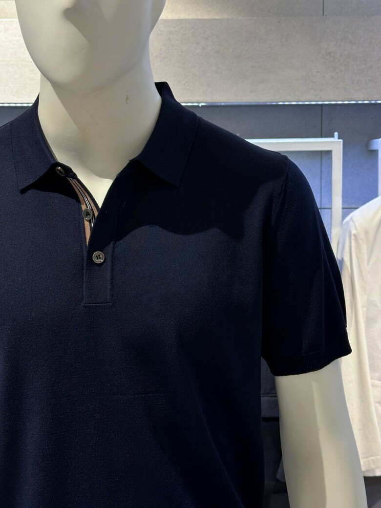 트루젠 네이비 라인배색 반팔 카라 니트 2533SP001014