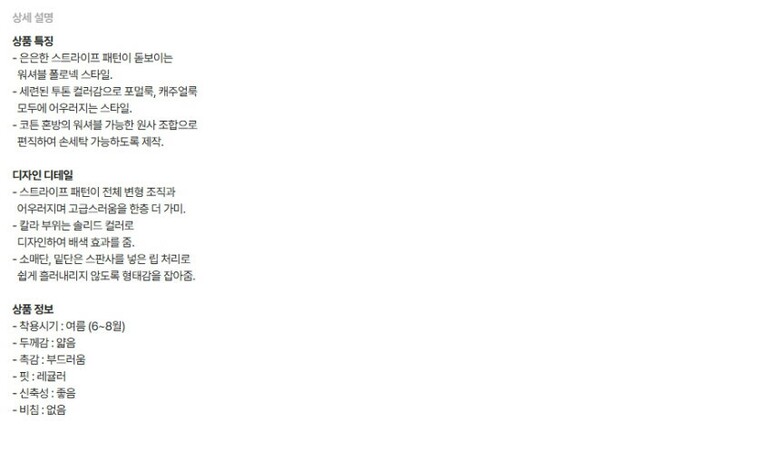 | 6. 세탁방법 및 취급시 주의사항 | 상품상세참조 |
