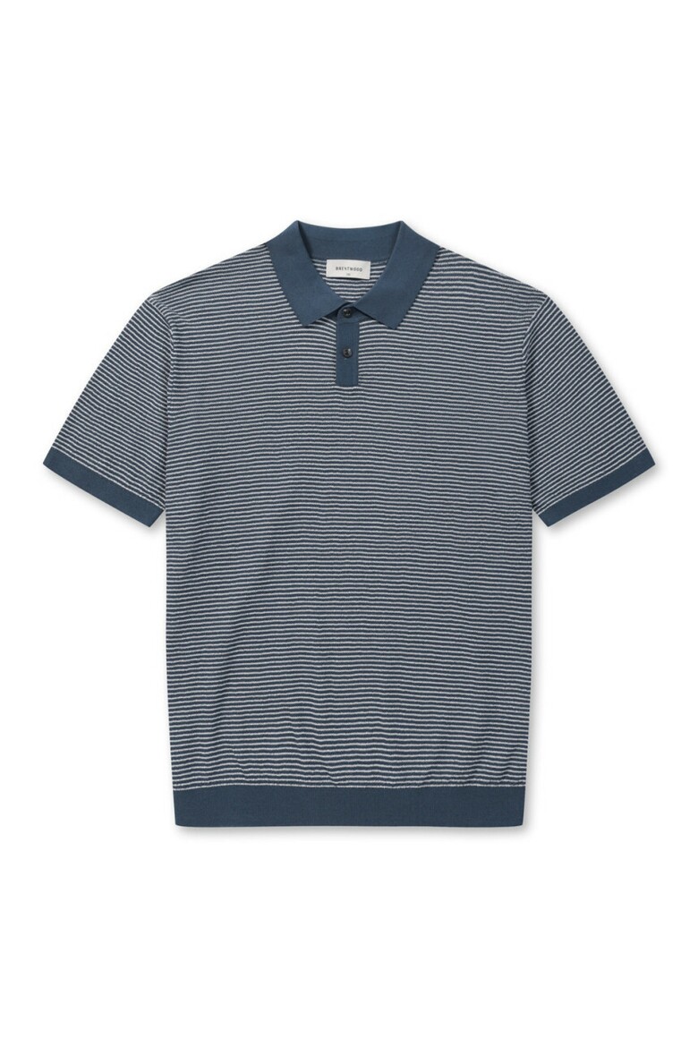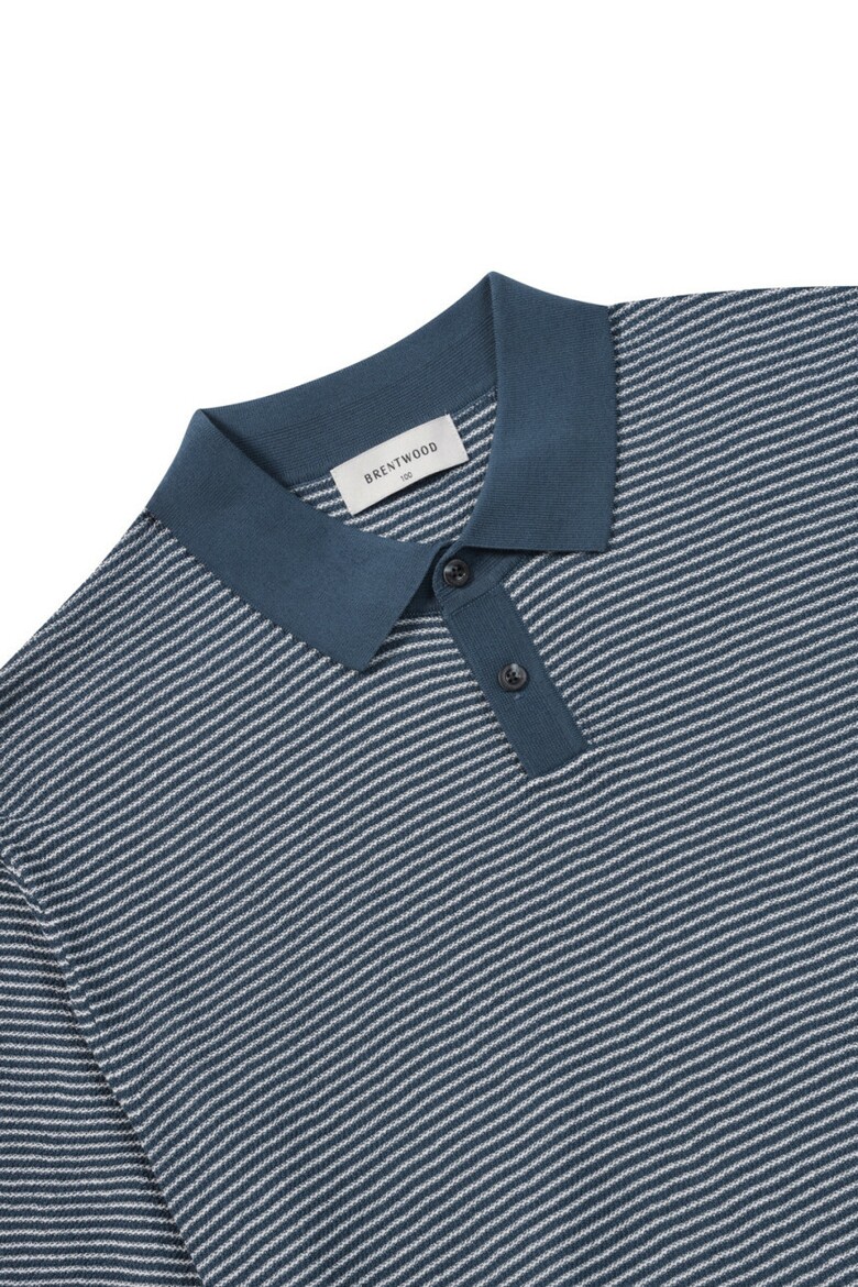 브렌우드 [워셔블] 블루 스트라이프패턴 폴로넥 남자 반팔 니트티셔츠 BRWAM25511BUX