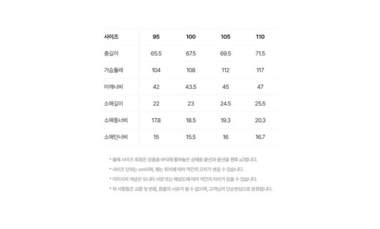 | 1. 제품 소재 (섬유의 조성 또는 혼용률을 백분율로 표시, 기능성인 경우 성적서 또는 허가서) | 상품상세참조 |