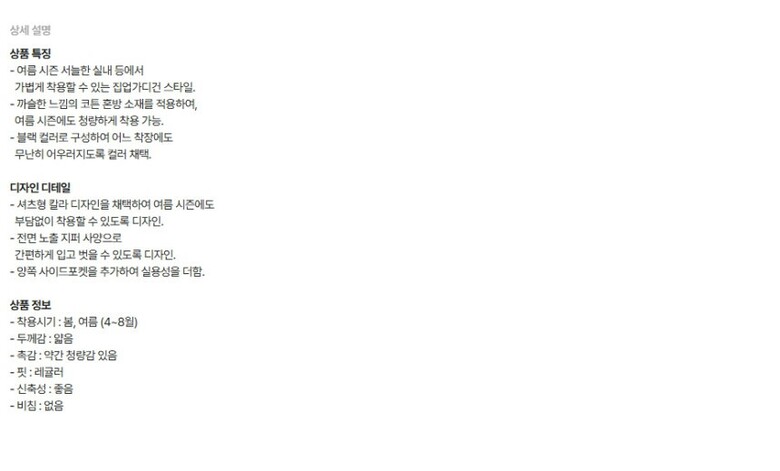 | 6. 세탁방법 및 취급시 주의사항 | 상품상세참조 |
