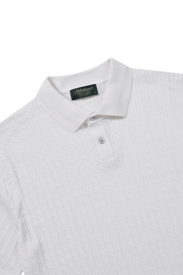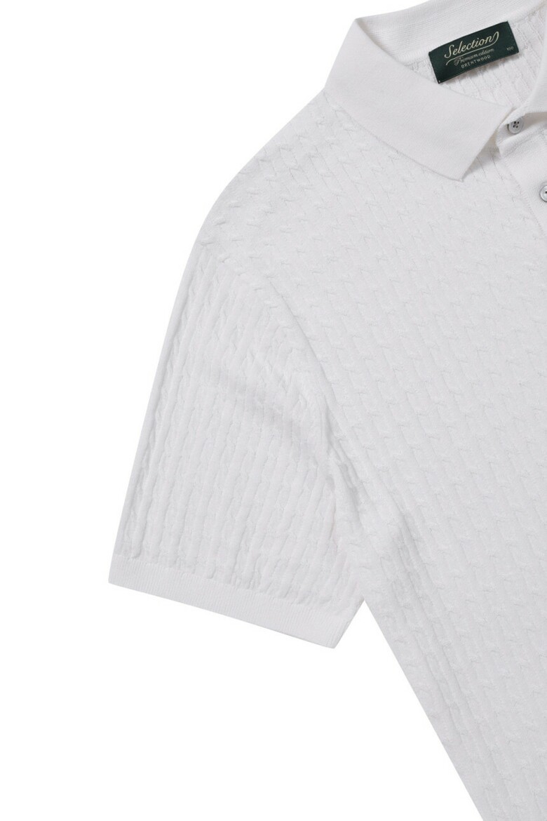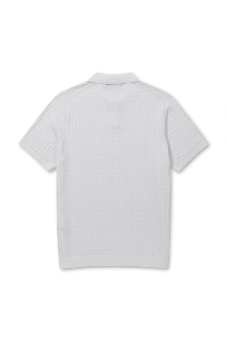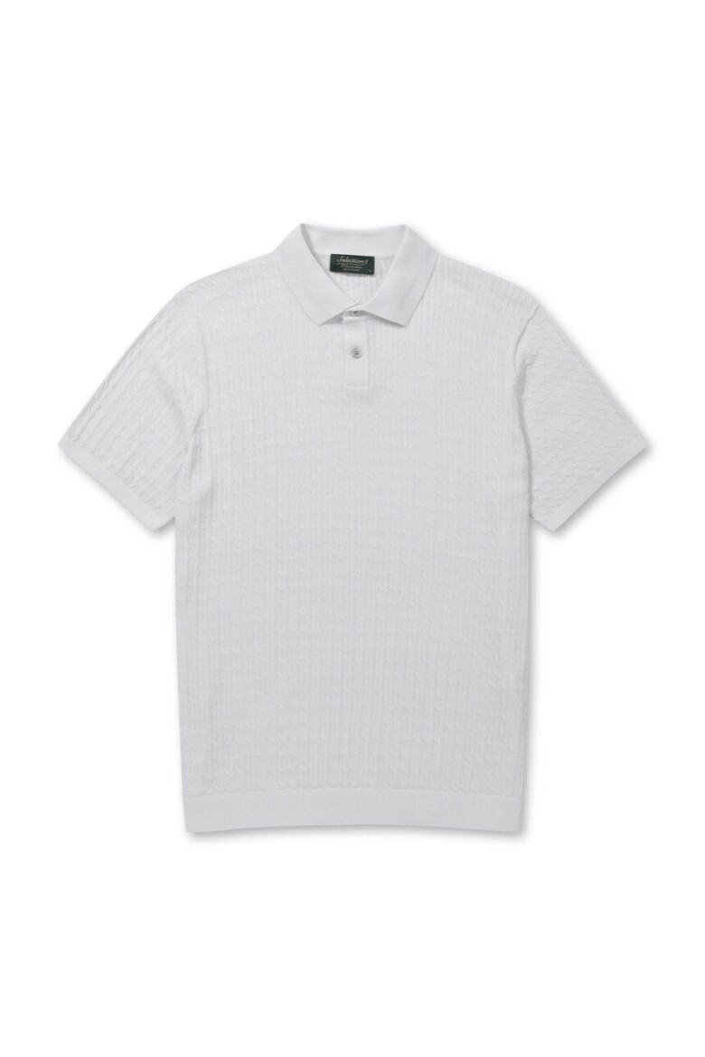 브렌우드 [시리즈:셀렉션] 화이트 케이블짜임 워셔블 폴로넥 남자 반팔 니트티셔츠 BRWAM25811WHX