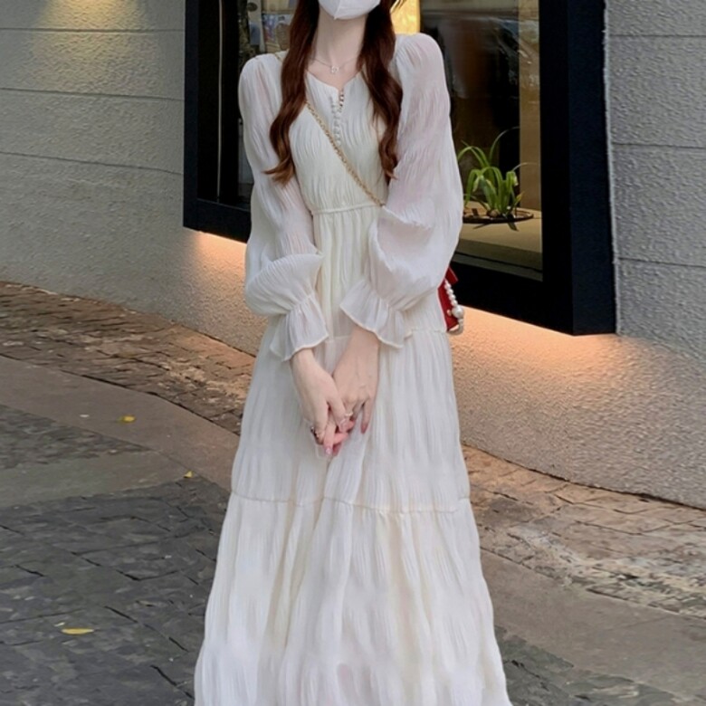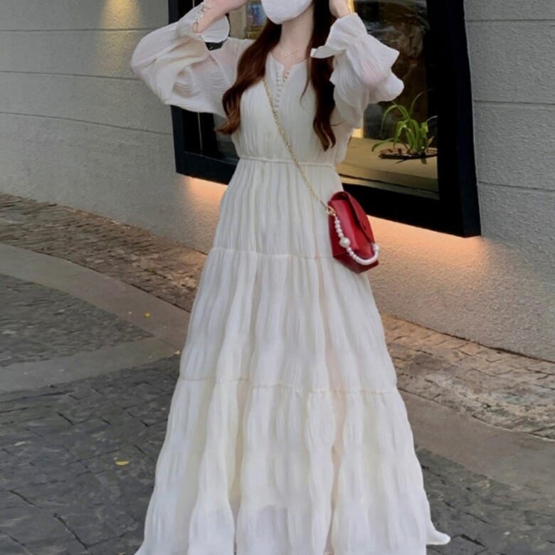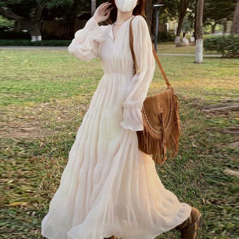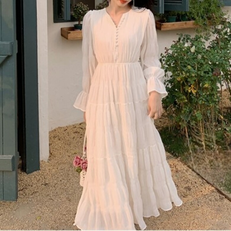 셀른디 화이트 비치 쉬폰 롱 원피스_250329_HN38