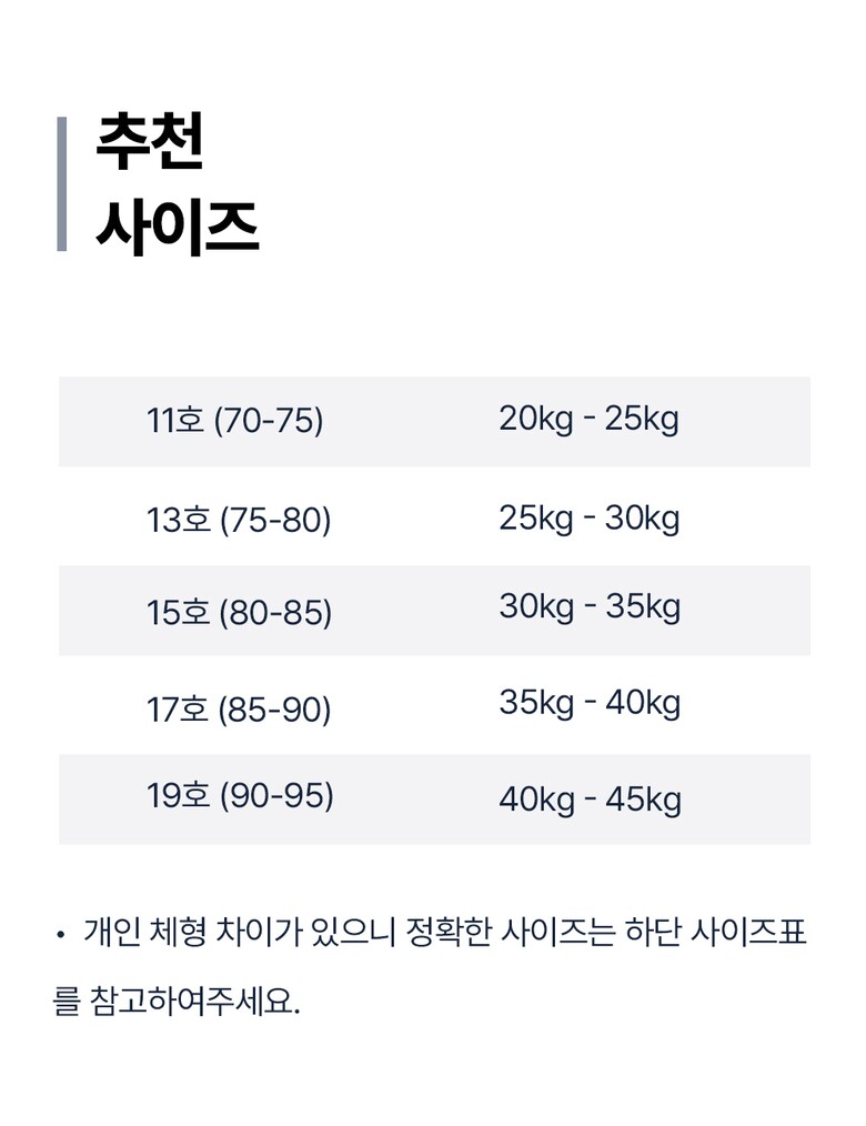 | 3. 치수 | 11호, 13호, 15호, 17호, 19호 |