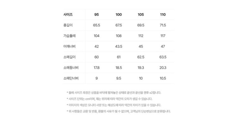 | 1. 제품 소재 (섬유의 조성 또는 혼용률을 백분율로 표시, 기능성인 경우 성적서 또는 허가서) | 상품상세참조 |