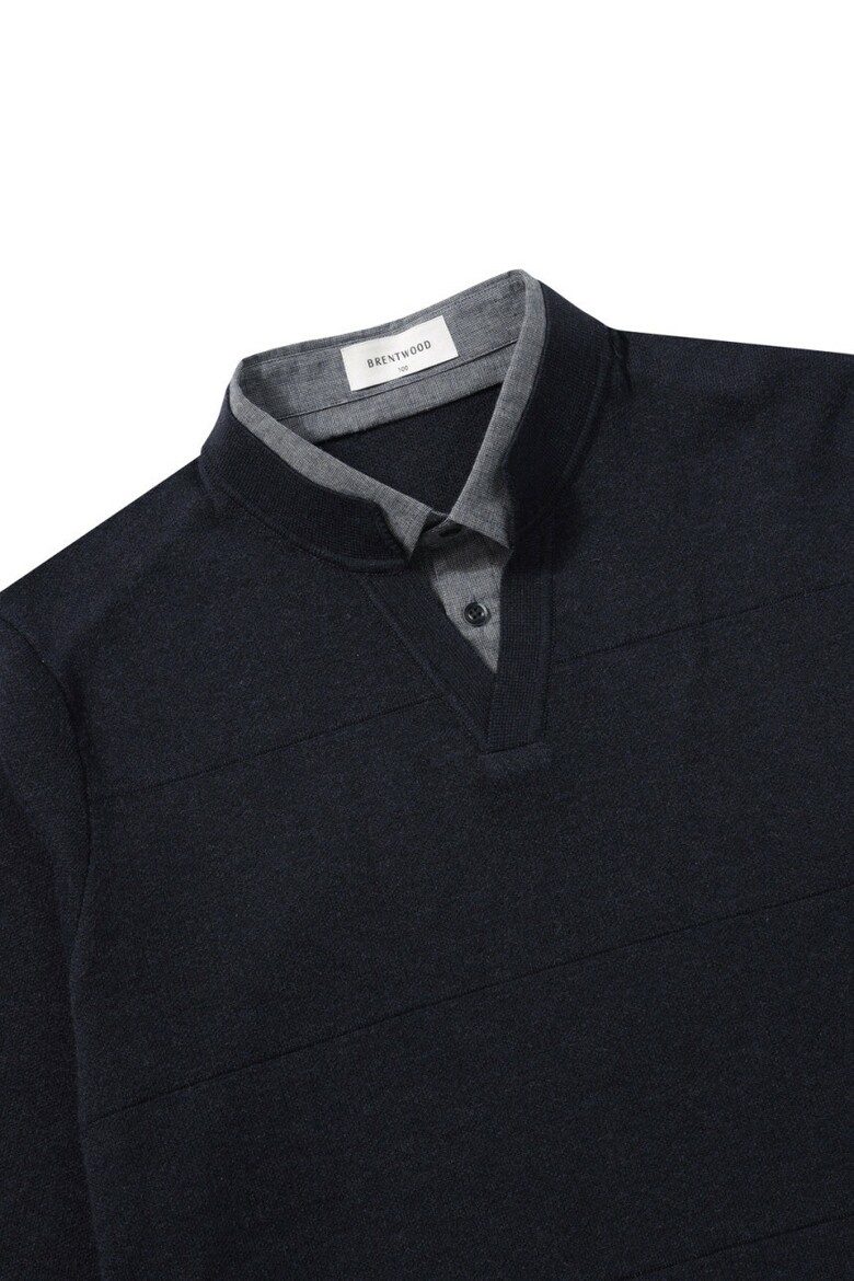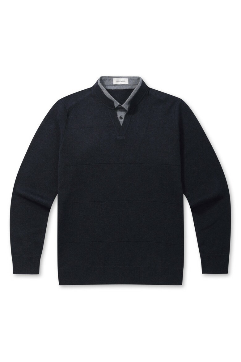 브렌우드 [시리즈:이노버] 네이비 셔츠레이어드 워셔블 남자 긴팔 니트티셔츠 BRWAX25151NYX