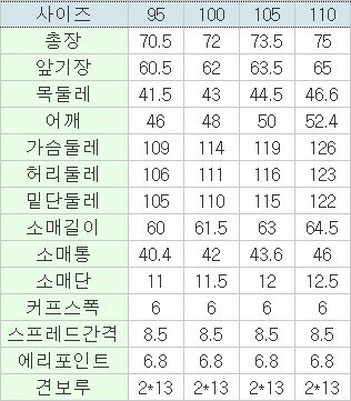 | 3. 치수 | 95,100,105,110 |