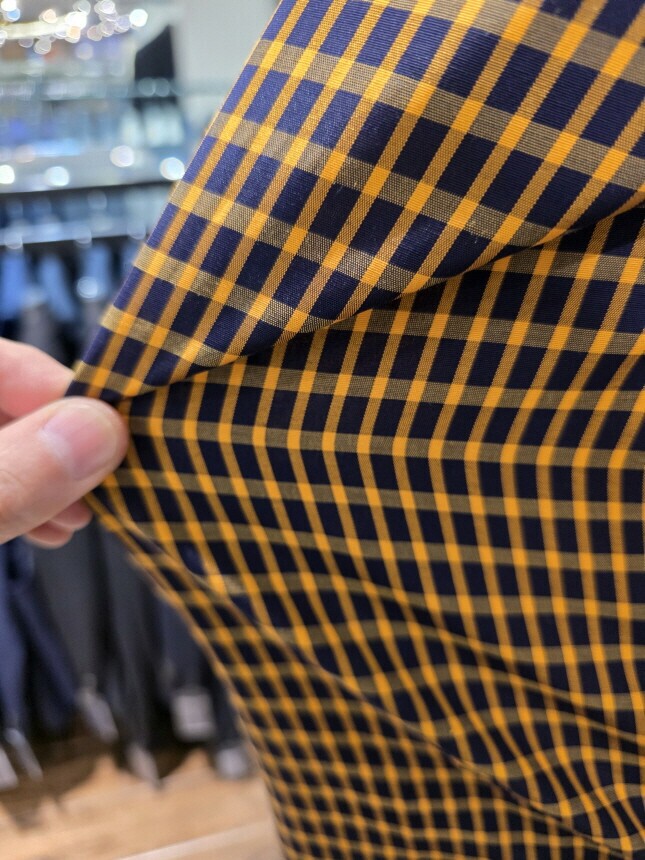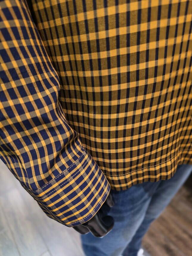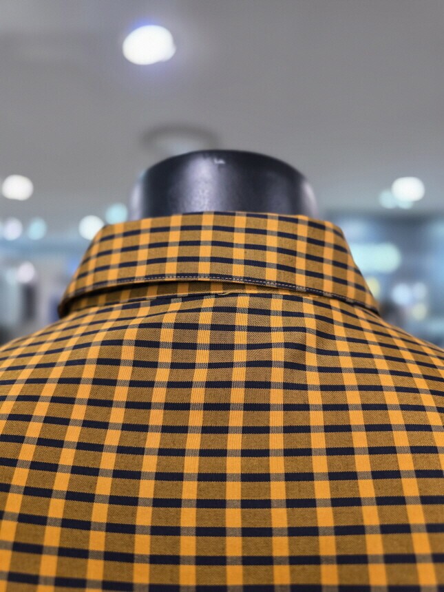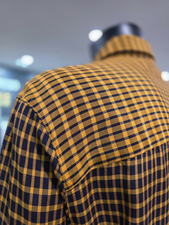 비대칭 체크로 스타일리시한 핏을