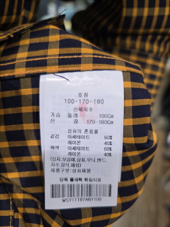 | 1. 제품 소재 (섬유의 조성 또는 혼용률을 백분율로 표시, 기능성인 경우 성적서 또는 허가서) | 겉감 : 아세테이트 60% , 레이온 40% 배색 : 아세테이트 60% , 레이 |
