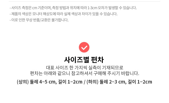 • 처음 배송된 상품상태와 다를 경우(세탁/착용 후 외출하신 경우) 반품이 불가합니다.