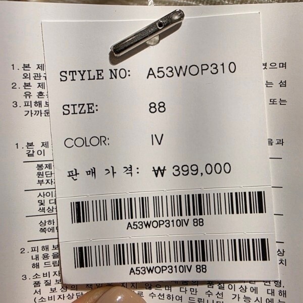 91(66) : 가슴단면 46,?허리단면 40,?소매길이 59, 총장?111