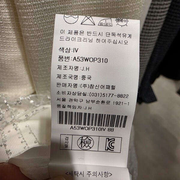 세탁방법 및 취급시 주의사항 : 드라이크리닝