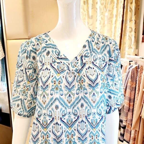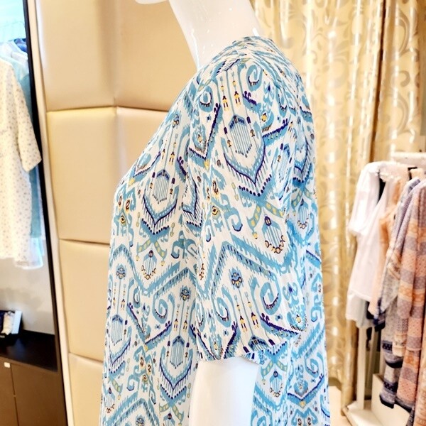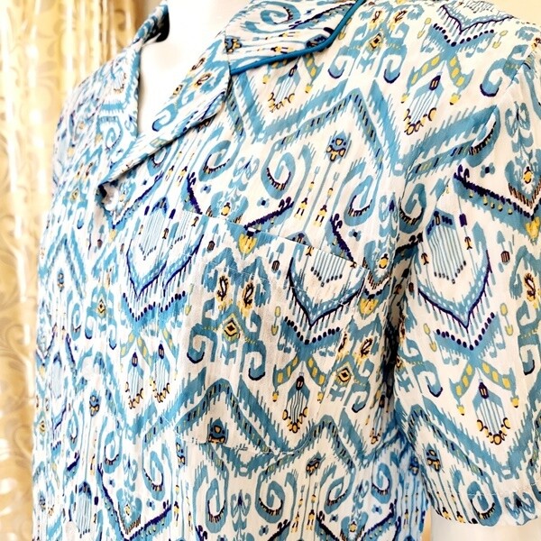 청량감이 느껴지는 컬러감과 시원한 주름지 소재를 사용한 에스닉 프린트 홈웨어 입니다.