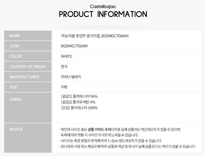 여성 리본 포인트 마도로스 캡 BGDMGC706 WH