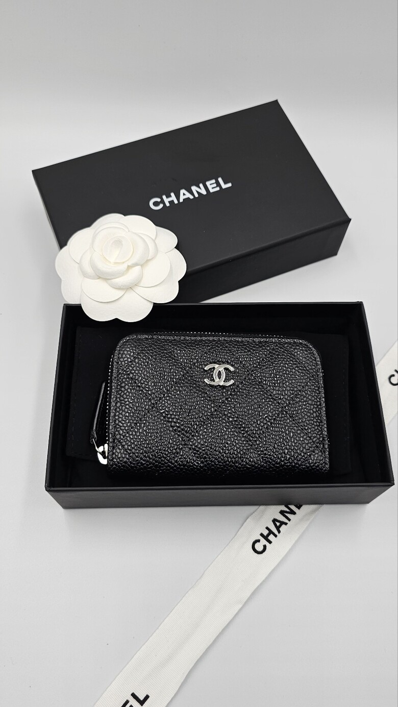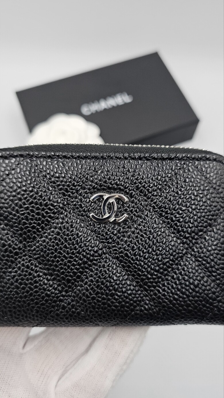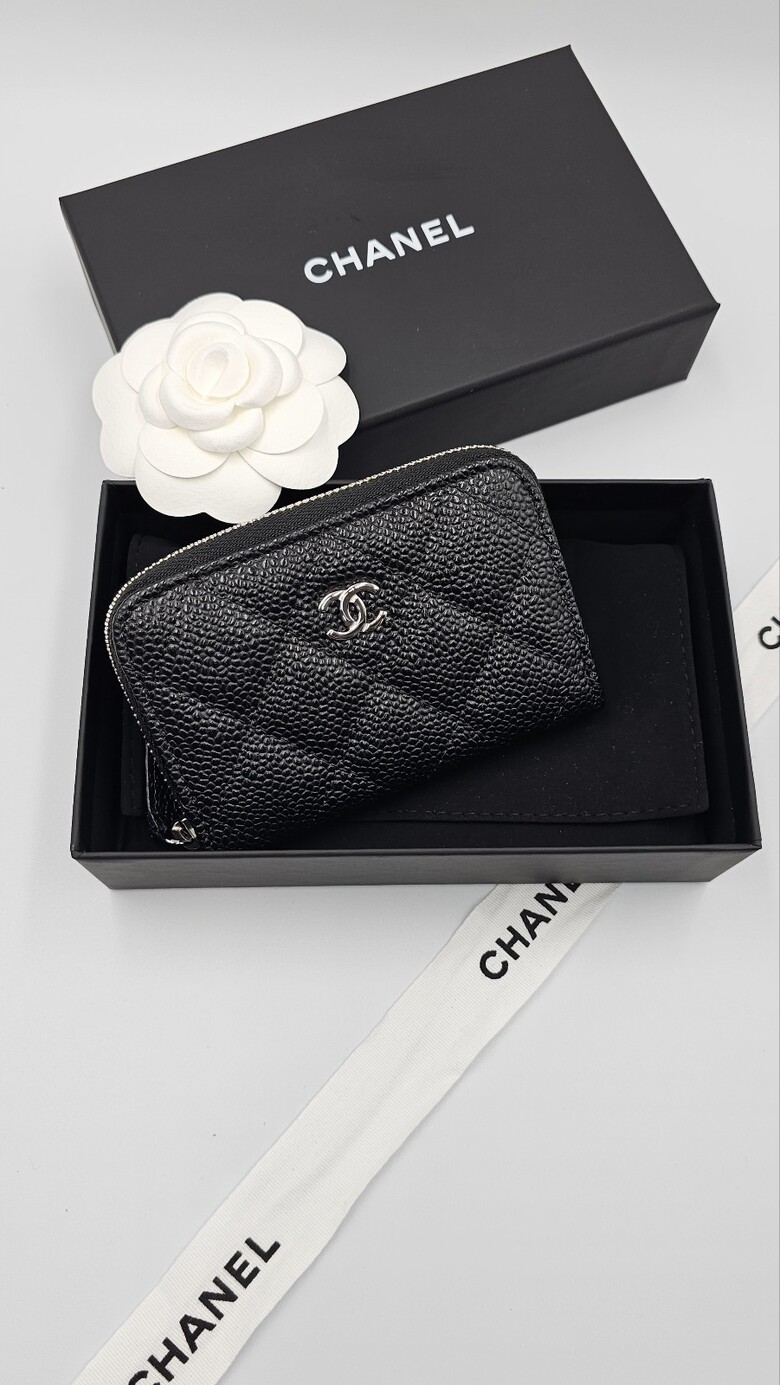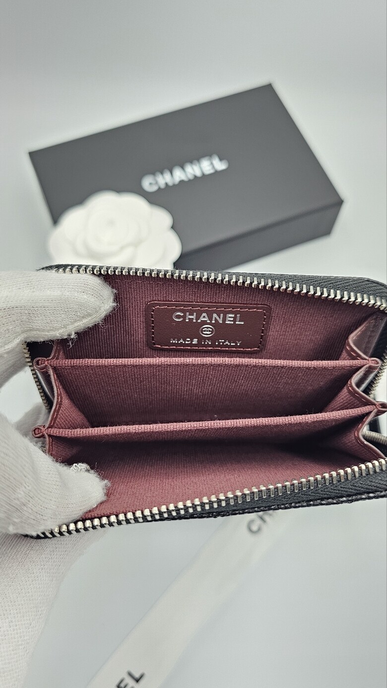 [명품] 샤넬 클래식 캐비어 지퍼돌이 카드 지갑 블랙 은장 AP0216