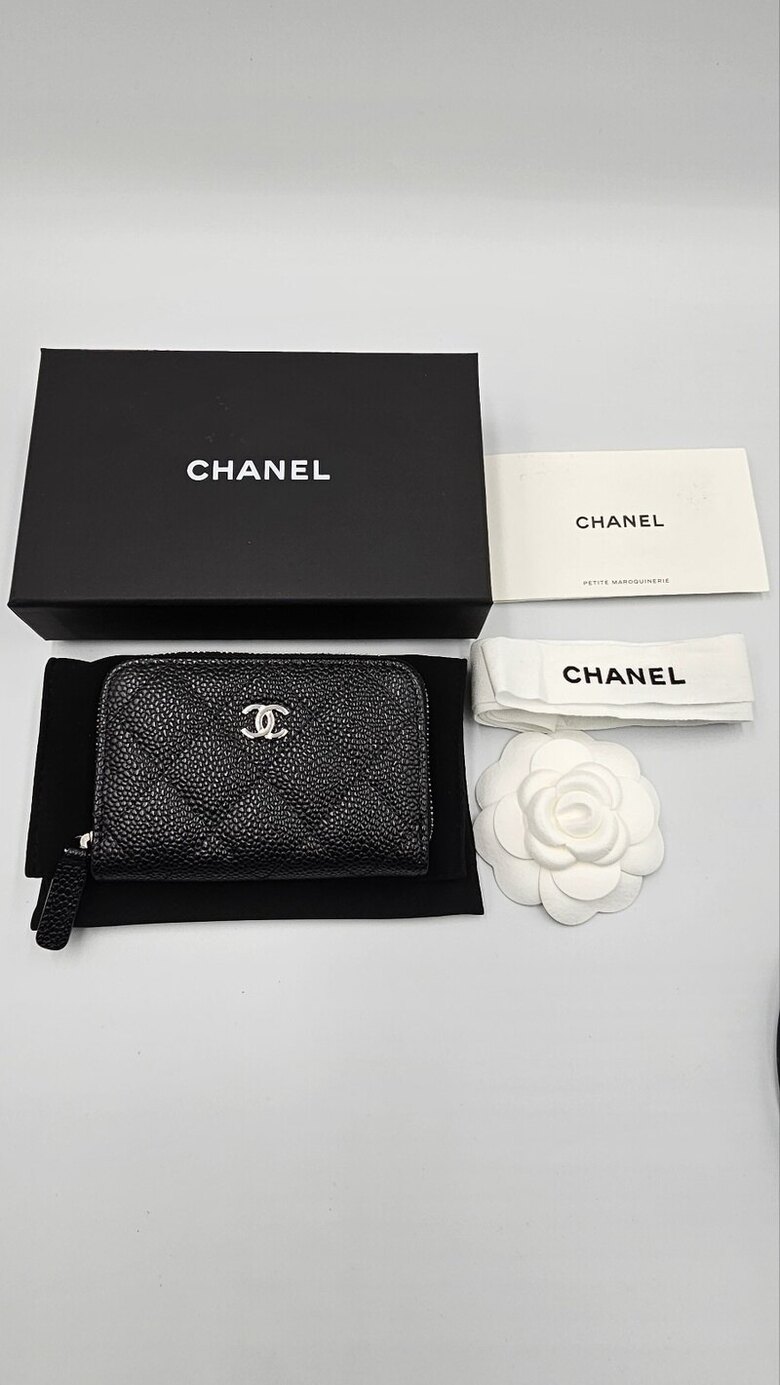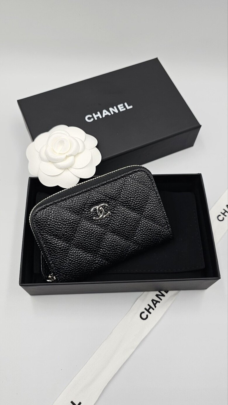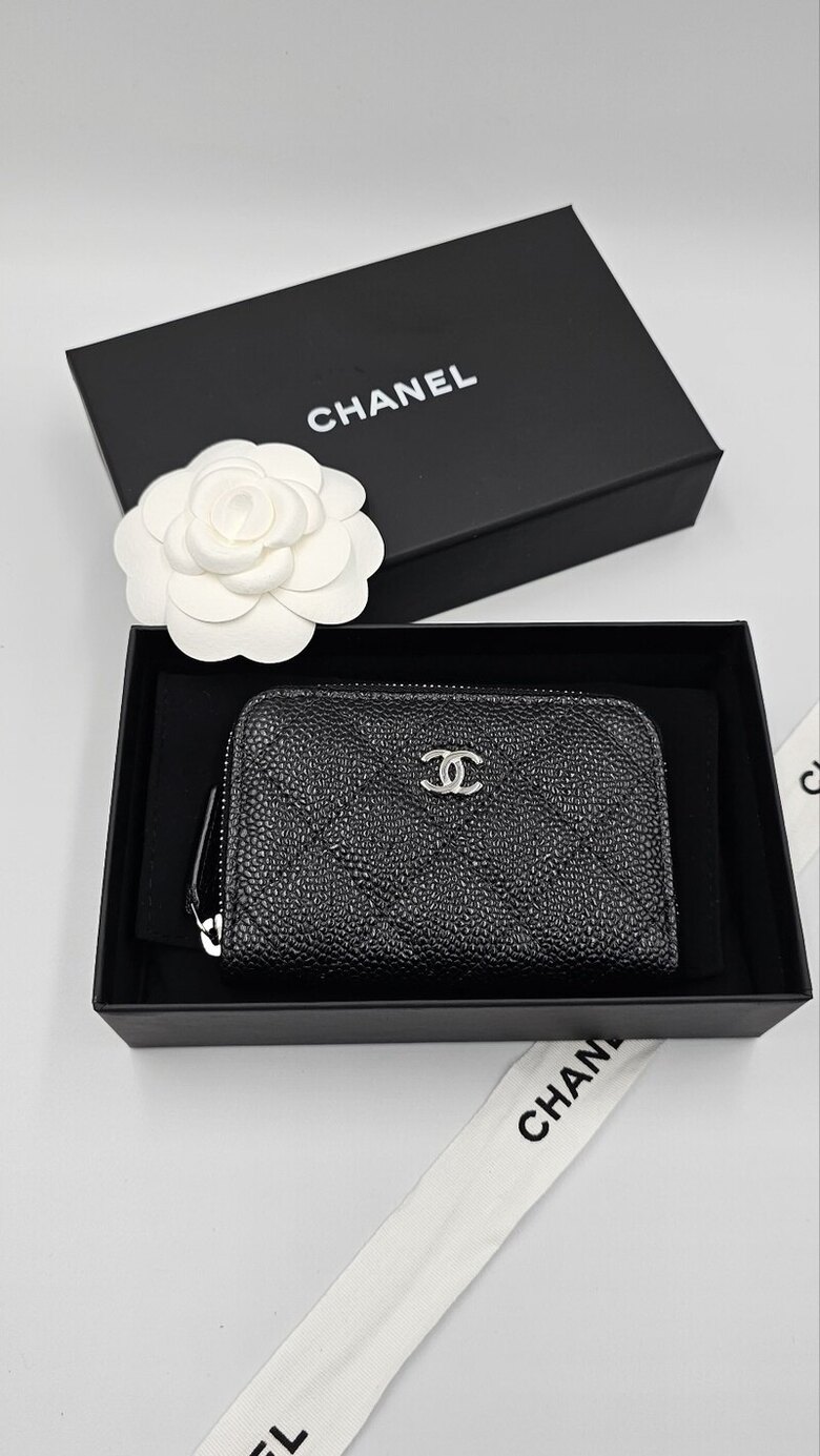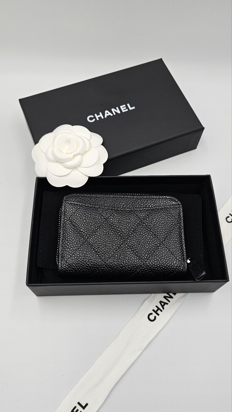 [명품] 샤넬 클래식 캐비어 지퍼돌이 카드 지갑 블랙 은장 AP0216