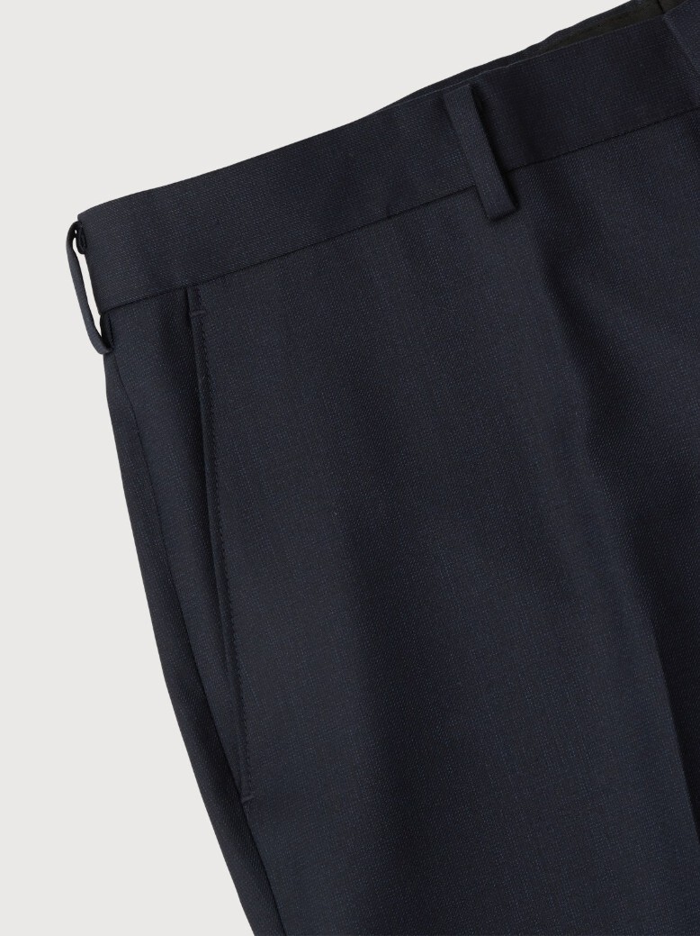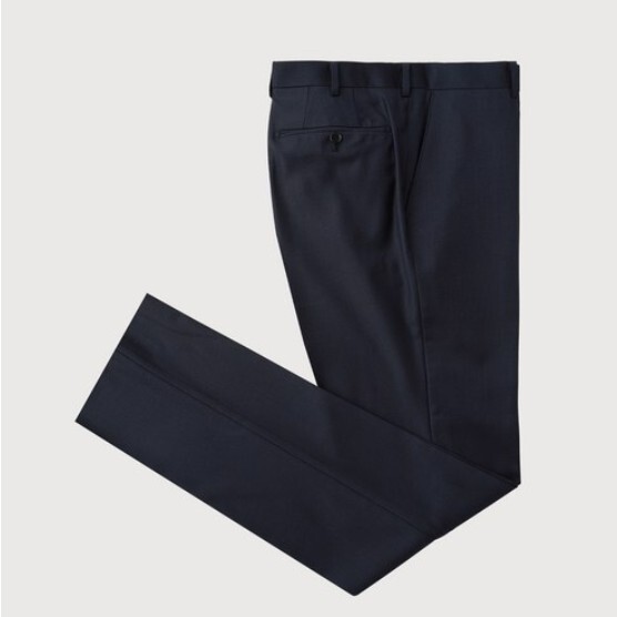 베이직한 스타일의 무지 네이비 정장팬츠입니다.