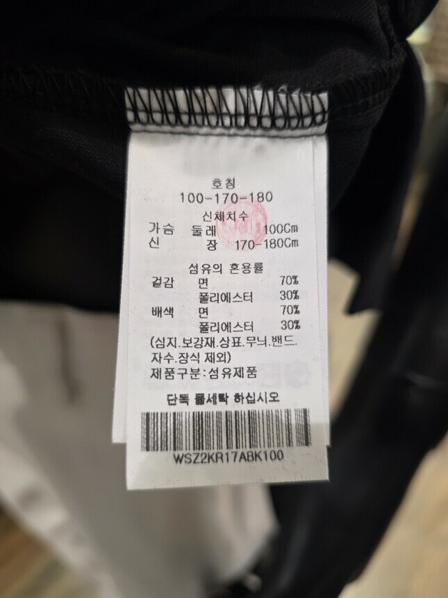 | 1. 제품 소재 (섬유의 조성 또는 혼용률을 백분율로 표시, 기능성인 경우 성적서 또는 허가서) | 겉감 : 면 70% , 폴리에스터 30% 배색 : 면 70% , 폴리에스터 30% ( |