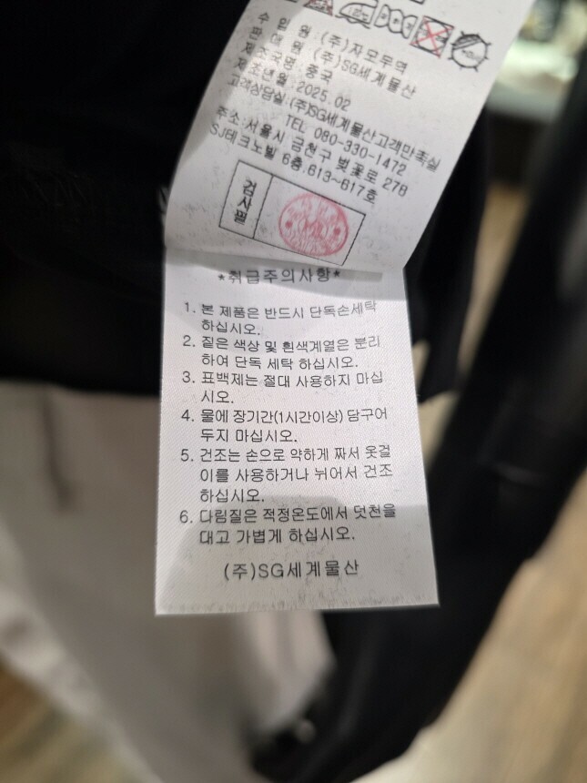 | 6. 세탁방법 및 취급시 주의사항 | 단독 물세탁 |