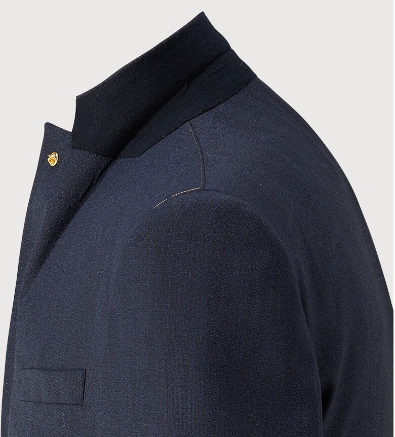 베이직한 스타일의 모와 견으로 제작된 네이비 정장자켓입니다.